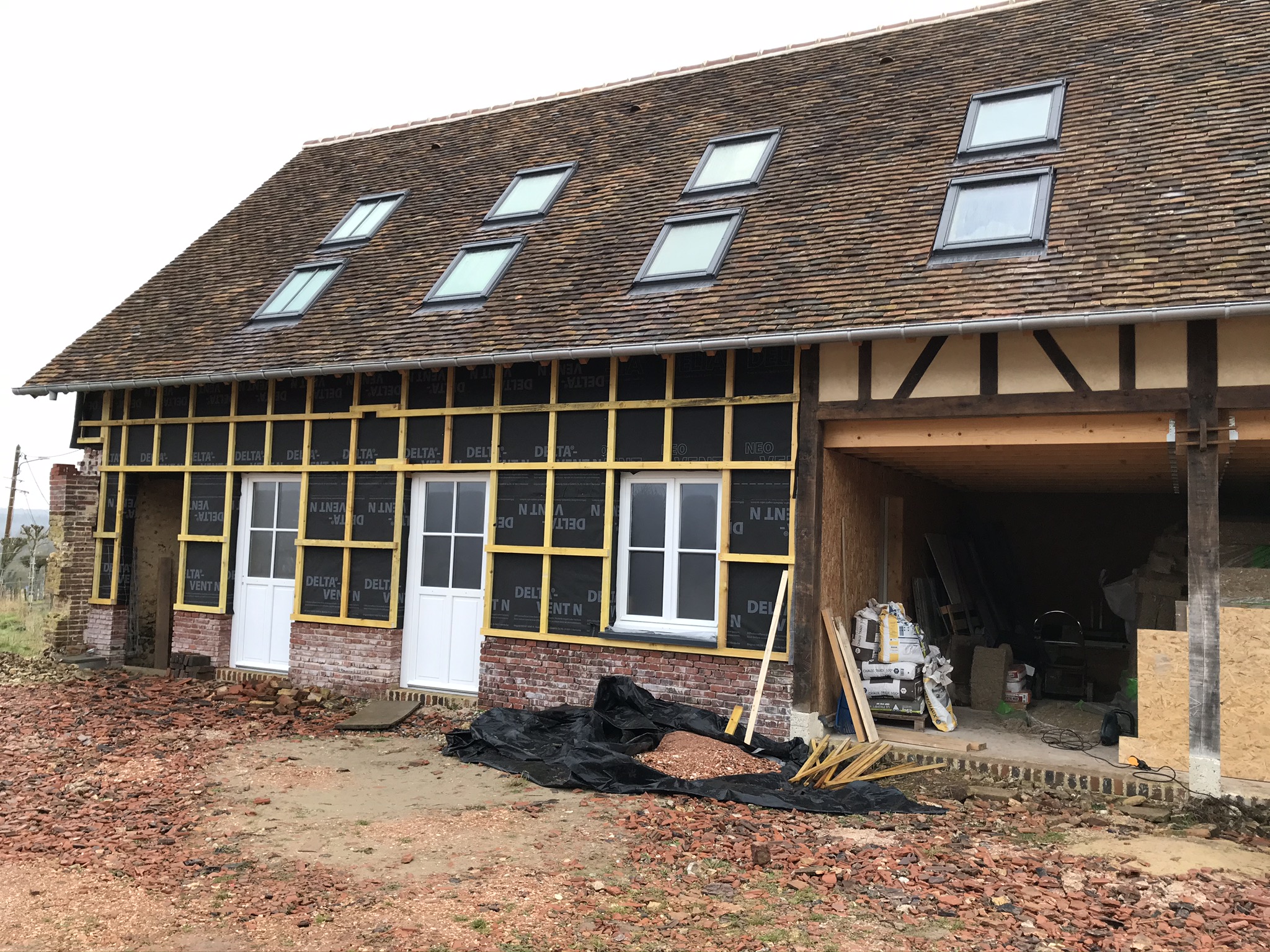 - Les menuisiers ont réalisé l'ossature bois du bâtiment annexe, côté cour ,avant pose du bardage.