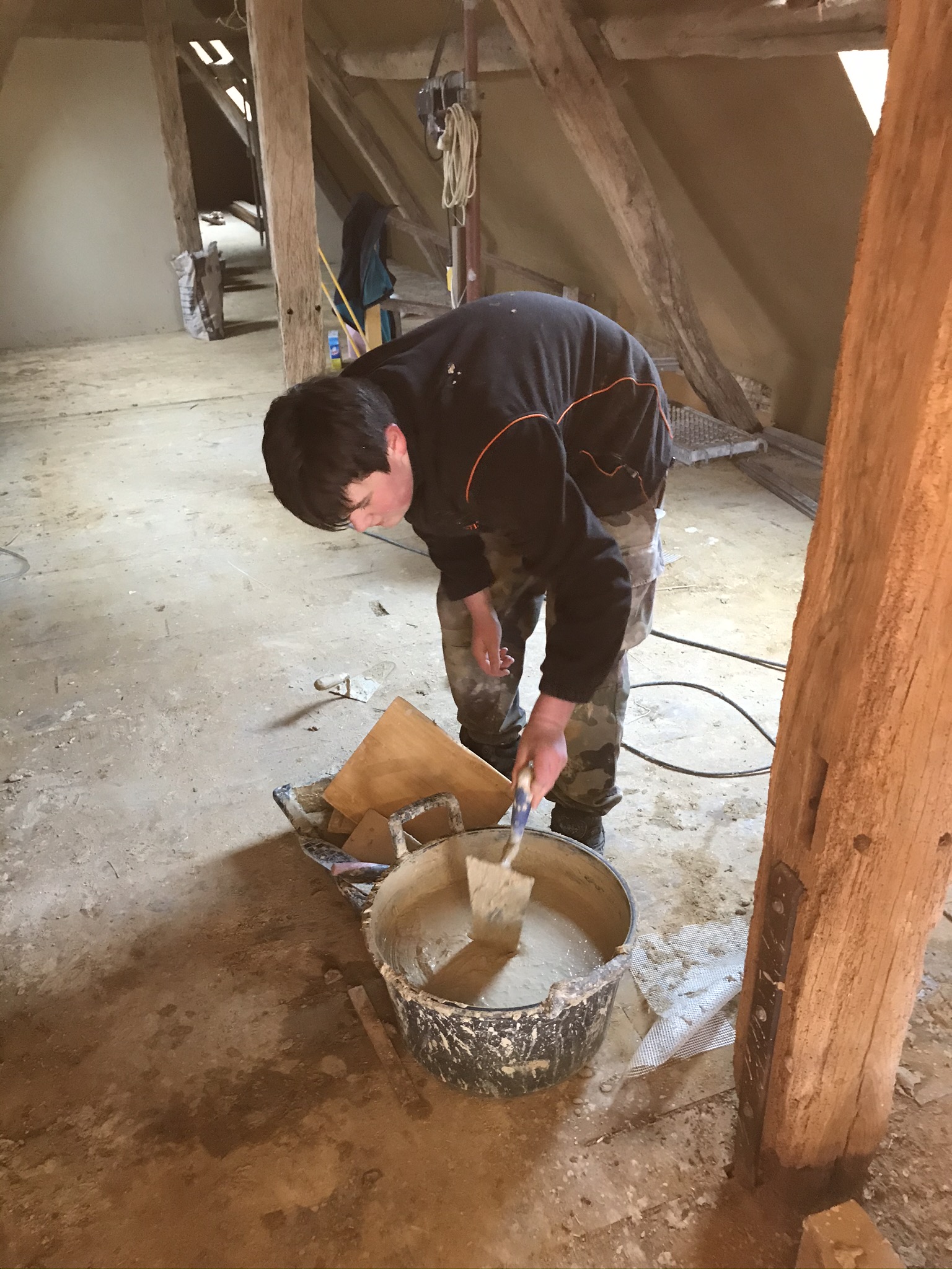 Le jeune Esteban n'a pas regretté son stage de 3ème année (beaucoup plus intéressant que l'école, a-t-il dit), pourtant il a surtout transporté des seaux, mélangé de la terre, monté des échelles et balayé !