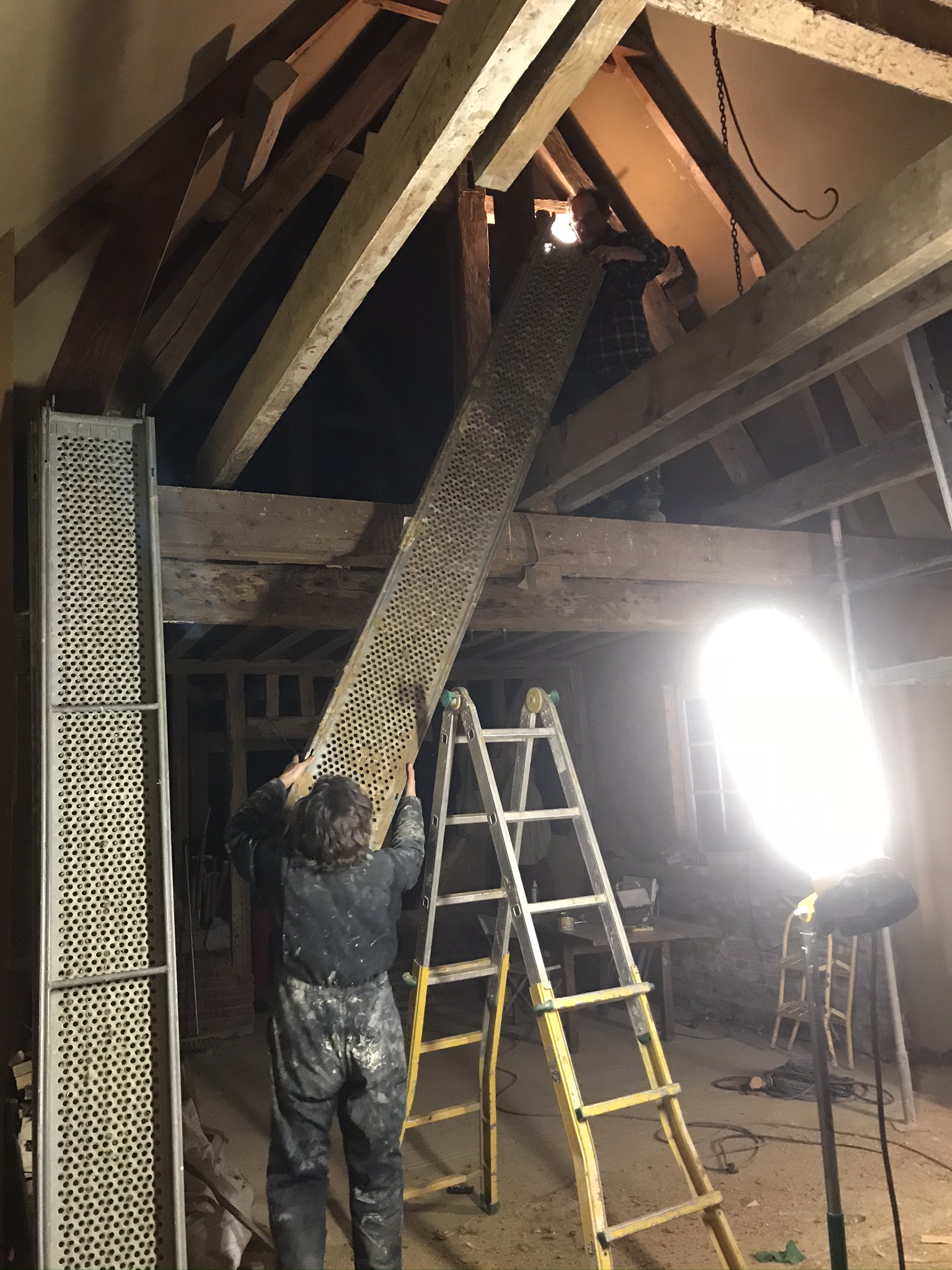- Pendant ce temps, j'ai posé l'isolant intérieur du futur atelier, avec l'aide du jeune Esteban et de Dominique qui est passée nous voir, merci à eux !