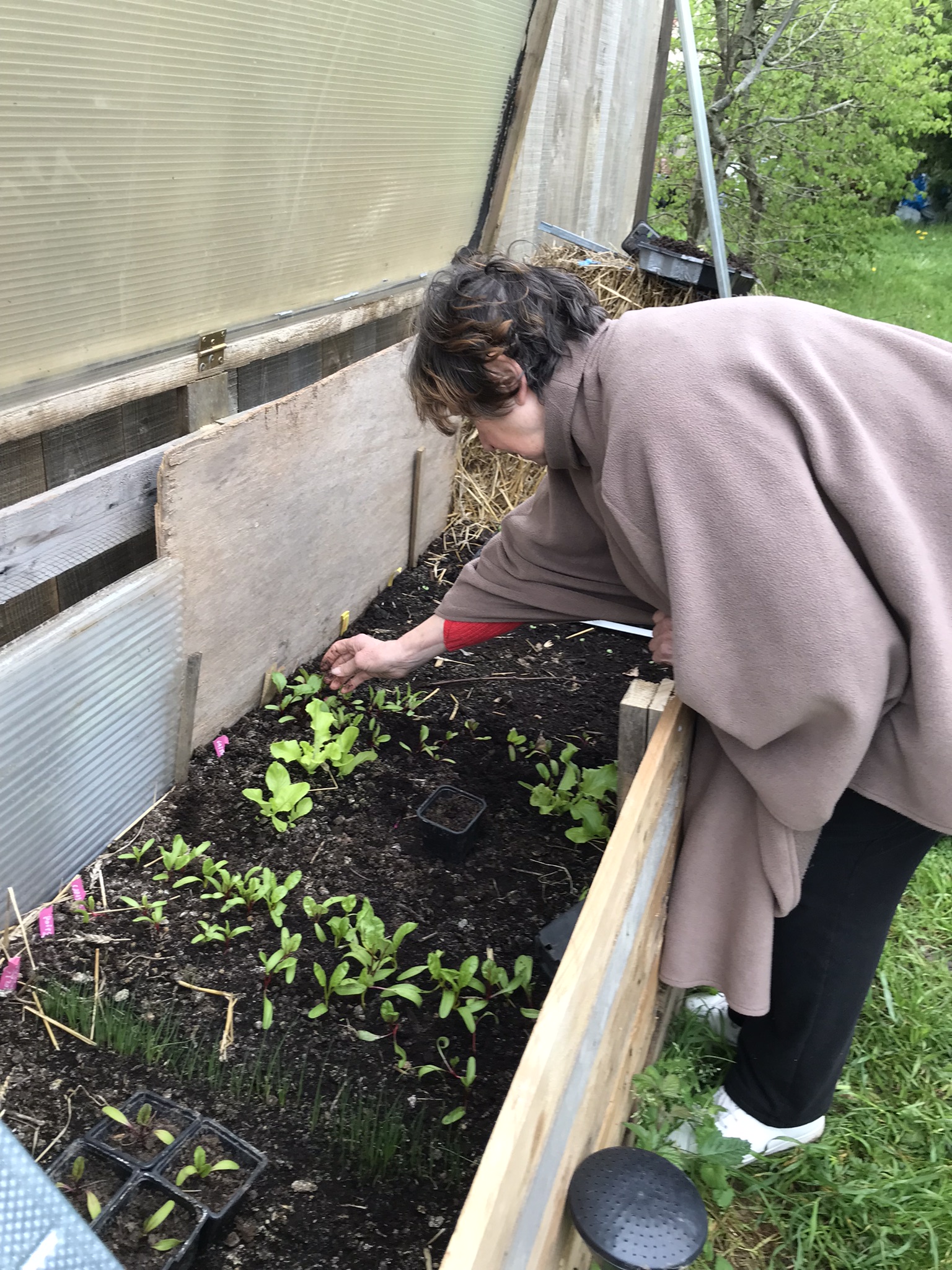 - Semis de fleurs et plantation des géraniums d'Annette ; fin du repiquage des betteraves et blettes, repiquage du céleri rave. Plantation des pommes de terre. Les pots de tomates, poivrons et aubergines ont pris le soleil puis la pluie avant de rentrer à l'abri. Désherbage autour d'un coin de fraisiers et sur des planches. Débroussaillage (Hugo trouve que c'est sans fin)