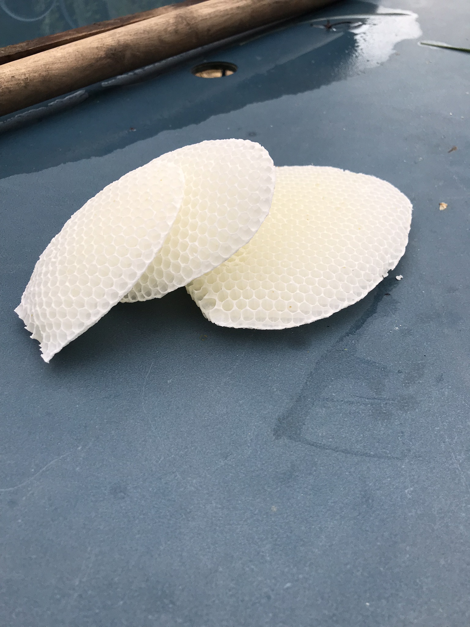 Abeilles : - Si je compte bien, ce sont 5 essaims qui sont sortis de cette ruche inépuisable de mon jardin. Autant dire qu'il a fallu improviser plusieurs fois pour essayer de récupérer, puis d'enrucher dans des ruches adaptées. J'ai appelé au secours pour trouver une grille anti-frelon car il n'y en avait plus en magasin. Les deux plus petits essaims vont rester chez nous, sous surveillance rapprochée. Le premier essaim récupéré est installé à TT. Tout ça est encore bien fragile.