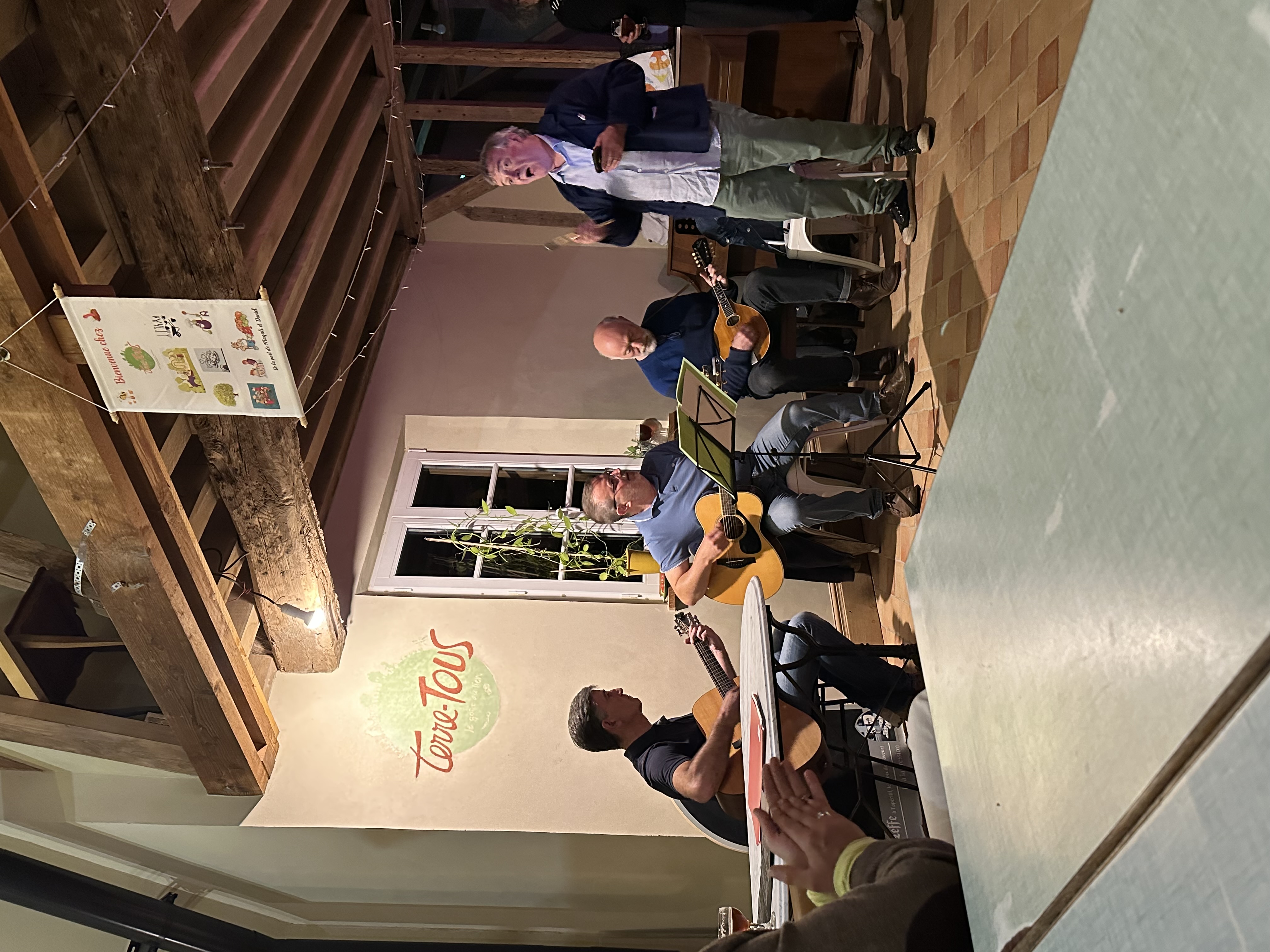 TT grouillait hier soir dans un joyeux brouhaha. La soirée musique a fait carton plein. Musique irlandaise et folk avec Jérôme, Jacky, Roland et Rory. Il y avait même un piano arrivé là le soir même dans les bras de Roland, et qui a tout de suite trouvé sa place. Un petit brasero pour prolonger le temps sur la terrasse, des rencontres, des retrouvailles, un repas partagé improvisé pour terminer, c'était un bon moment.
