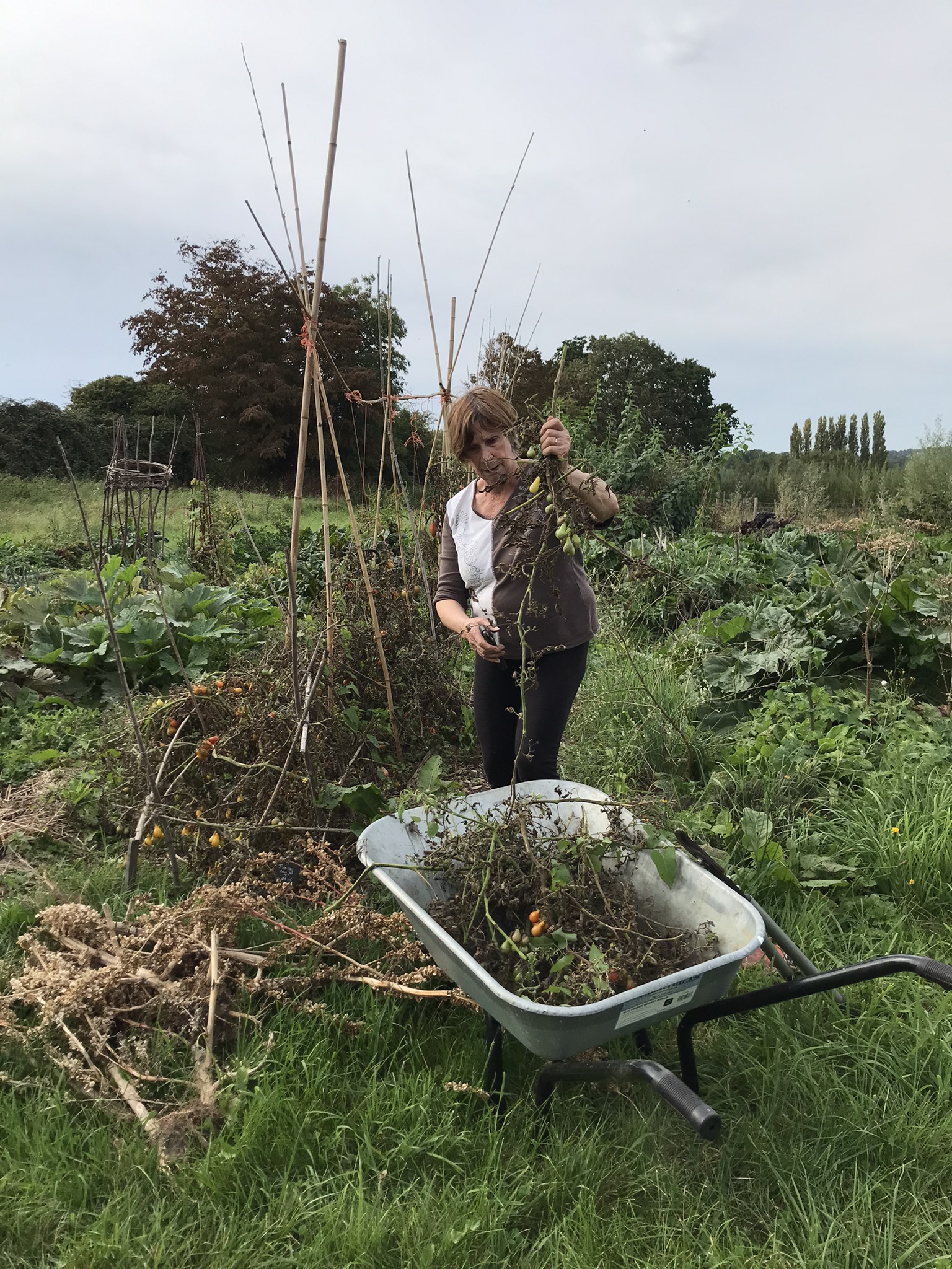- Les tomates et haricots verts ont été arrachés, les tuteurs rangés, avec l'aide de Dominique.