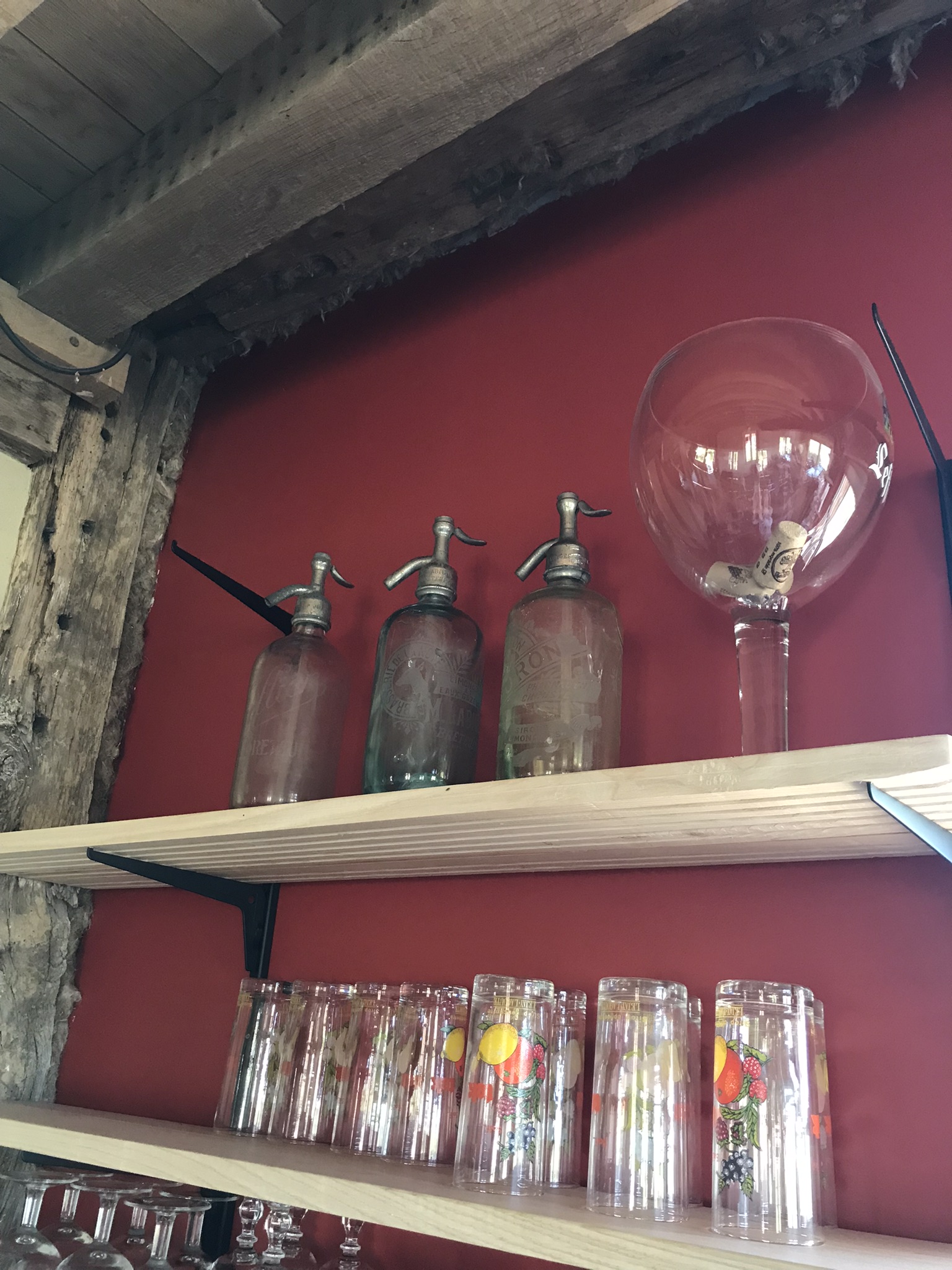 Claude nous a apporté des anciennes bouteilles d'eau de Seltz qui viennent du café de ses parents, pour orner le café de TT. Des souvenirs qui se prolongent...