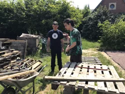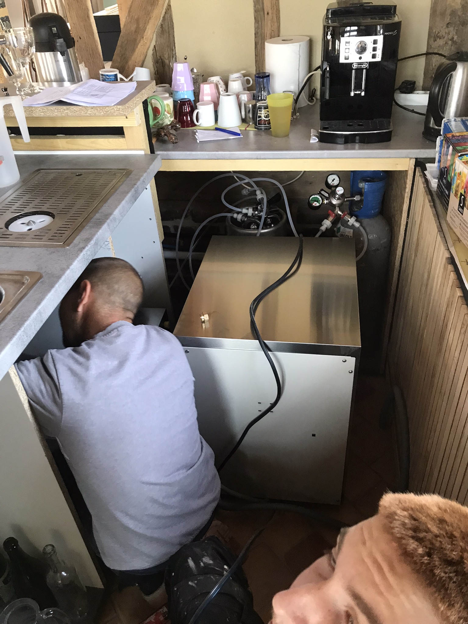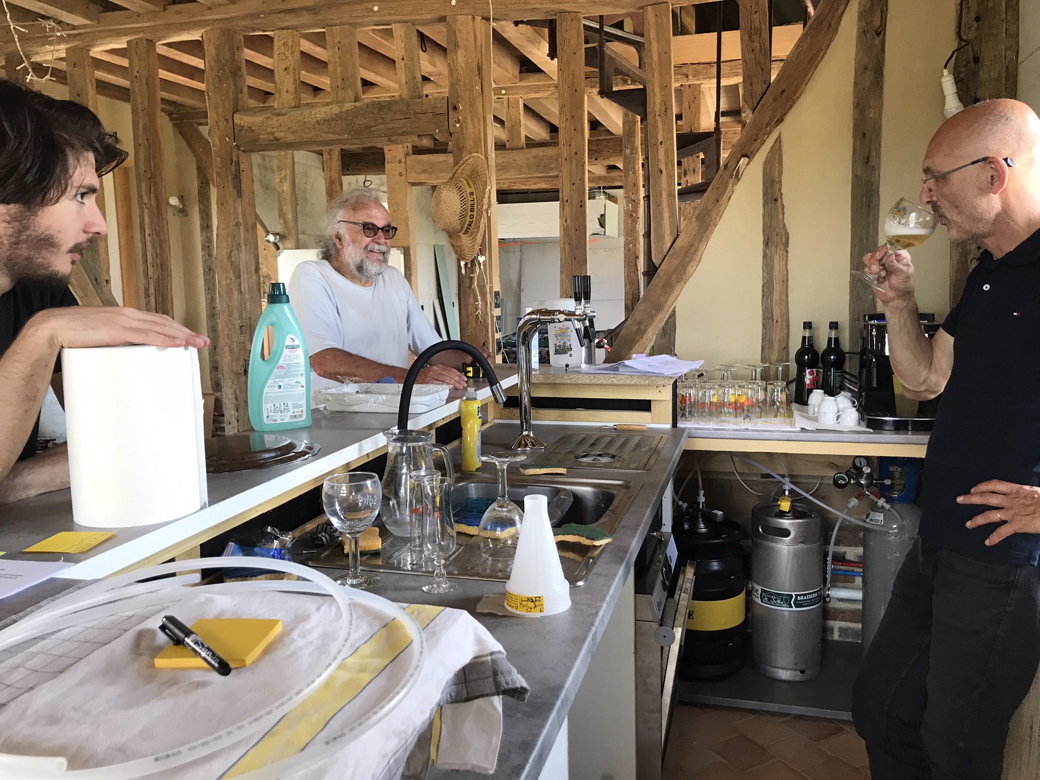 Hugo et Dominique sont allés chercher les premiers fûts de bière et ont testé la pompe