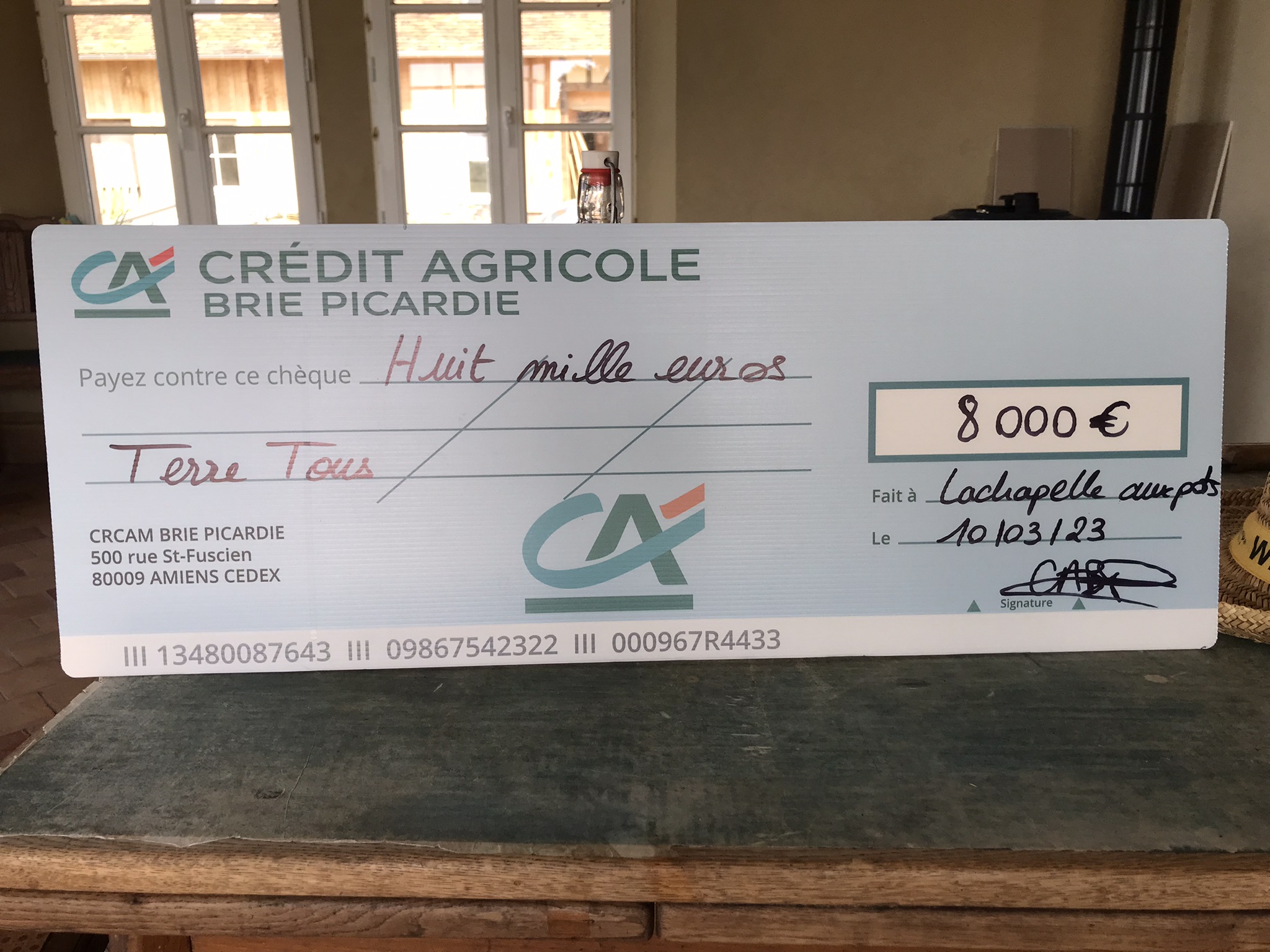 Le Crédit Agricole nous a versé son aide financière de 8 000€.