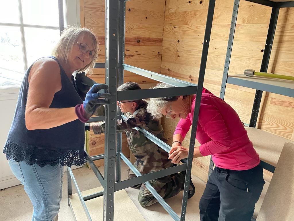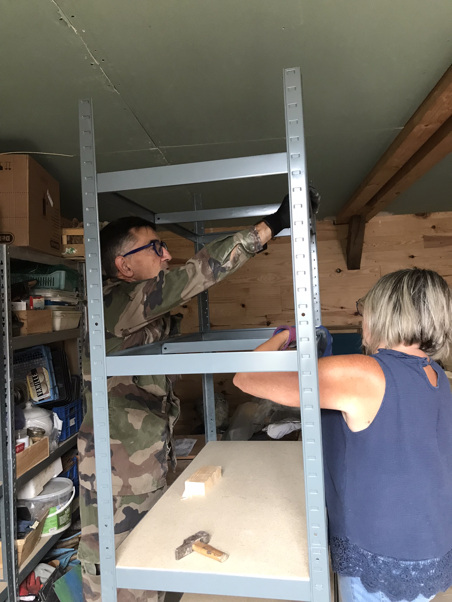 - les trois étagères dans l'atelier ont été montées de manière hyper efficace. La réorganisation du rangement a démarré, mais si vous aimez "penser rangement", n'hésitez pas à venir voir et proposer des solutions d'optimisation de l'espace.
