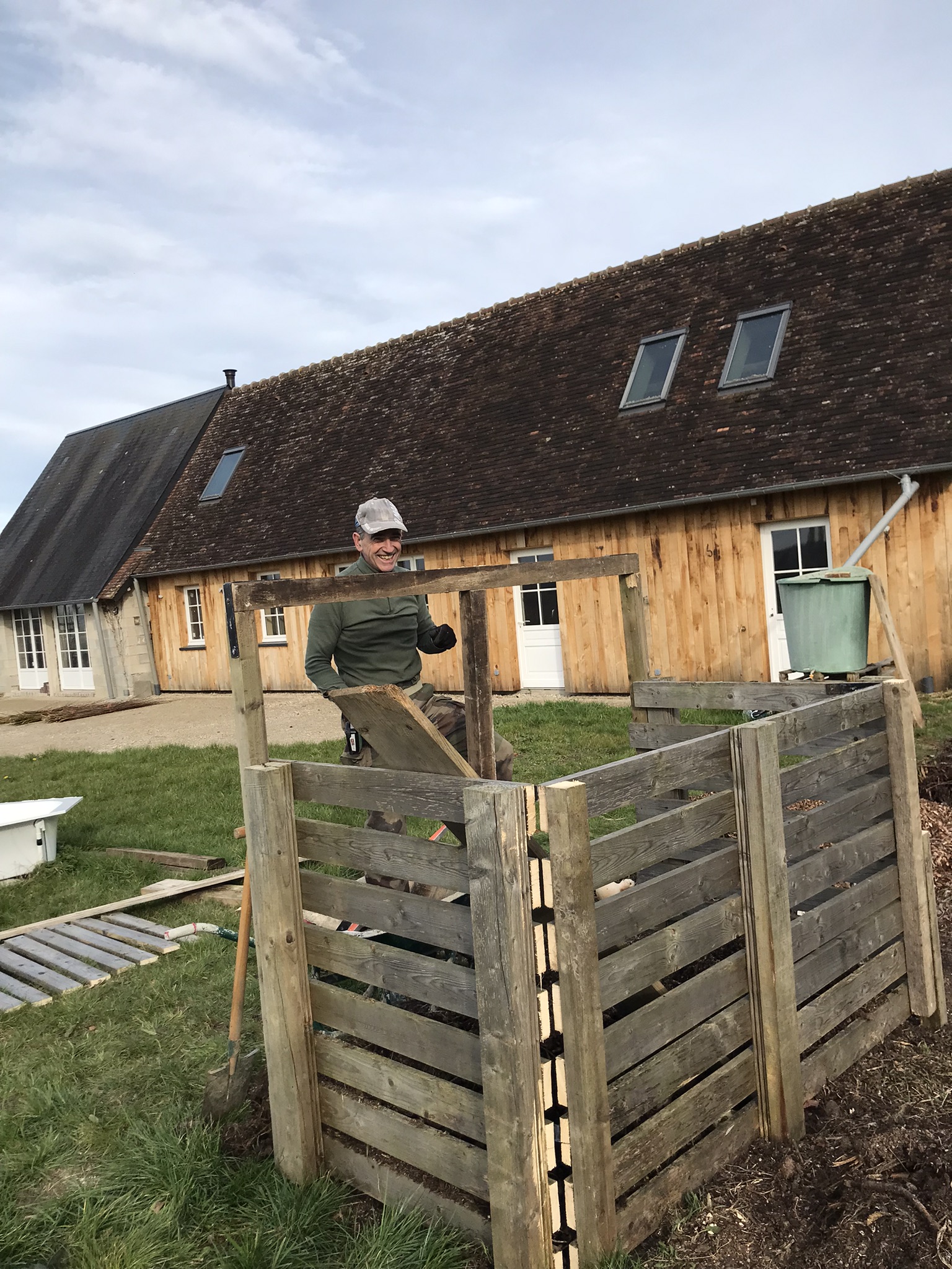 - Le récepteur de compost a déjà une belle allure avec ses charnières de récupération et ses deux (futurs) bacs