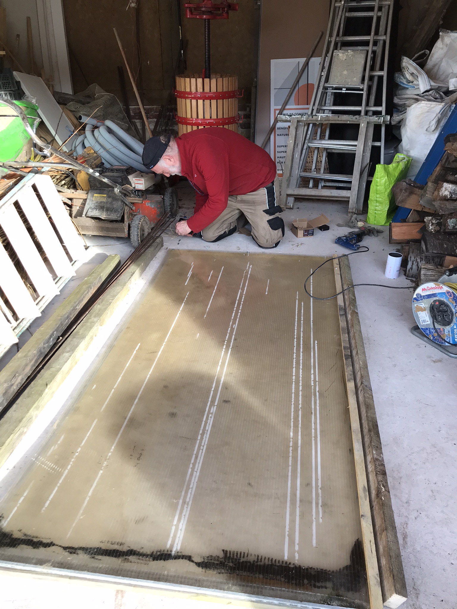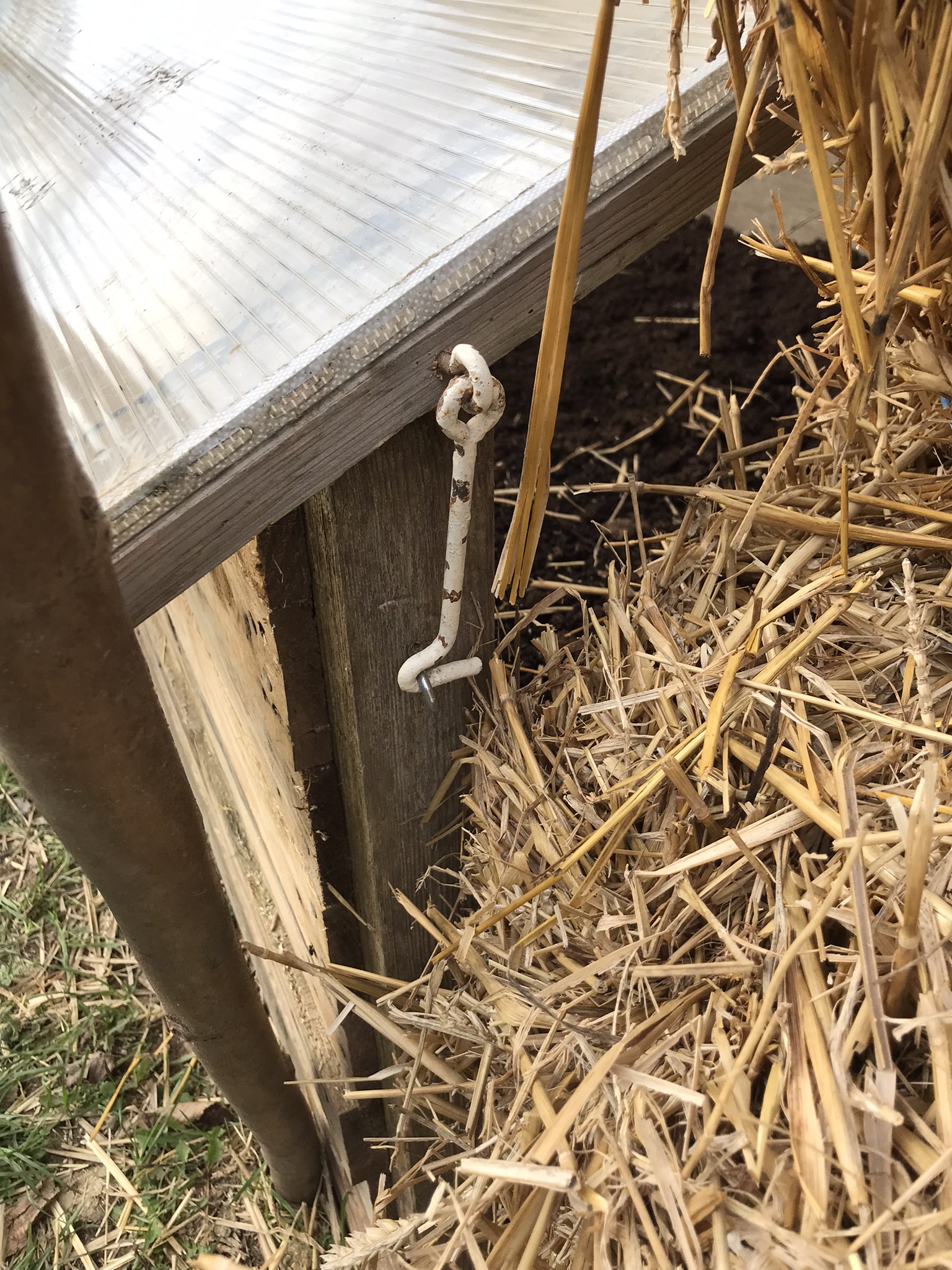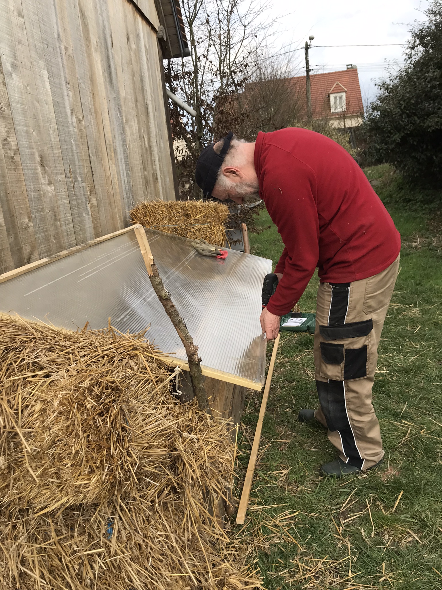 - La pose de la couverture en polycarbonate du châssis est terminée. Superbe. Le vent ne devrait pas l'embarquer grâce à de jolis crochets de récupération. Prêt pour le premier semis sous châssis la semaine prochaine.
