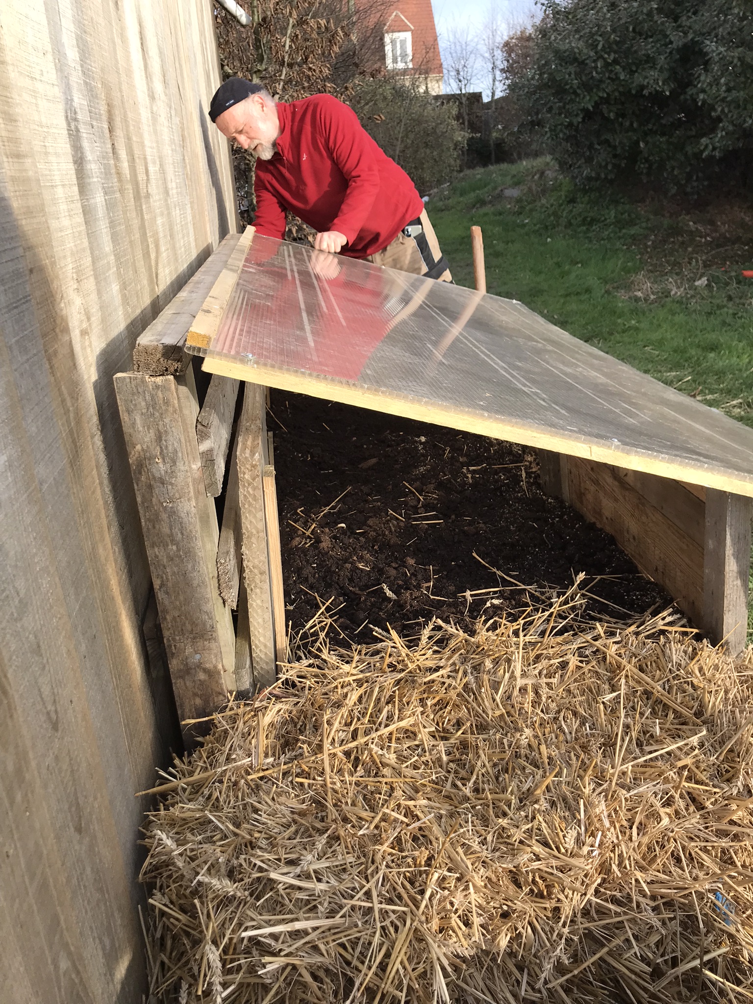 Mardi après 15h30 : premiers semis sous châssis avec Marie-Jo, et fin de nettoyage des planches avec Pepela
