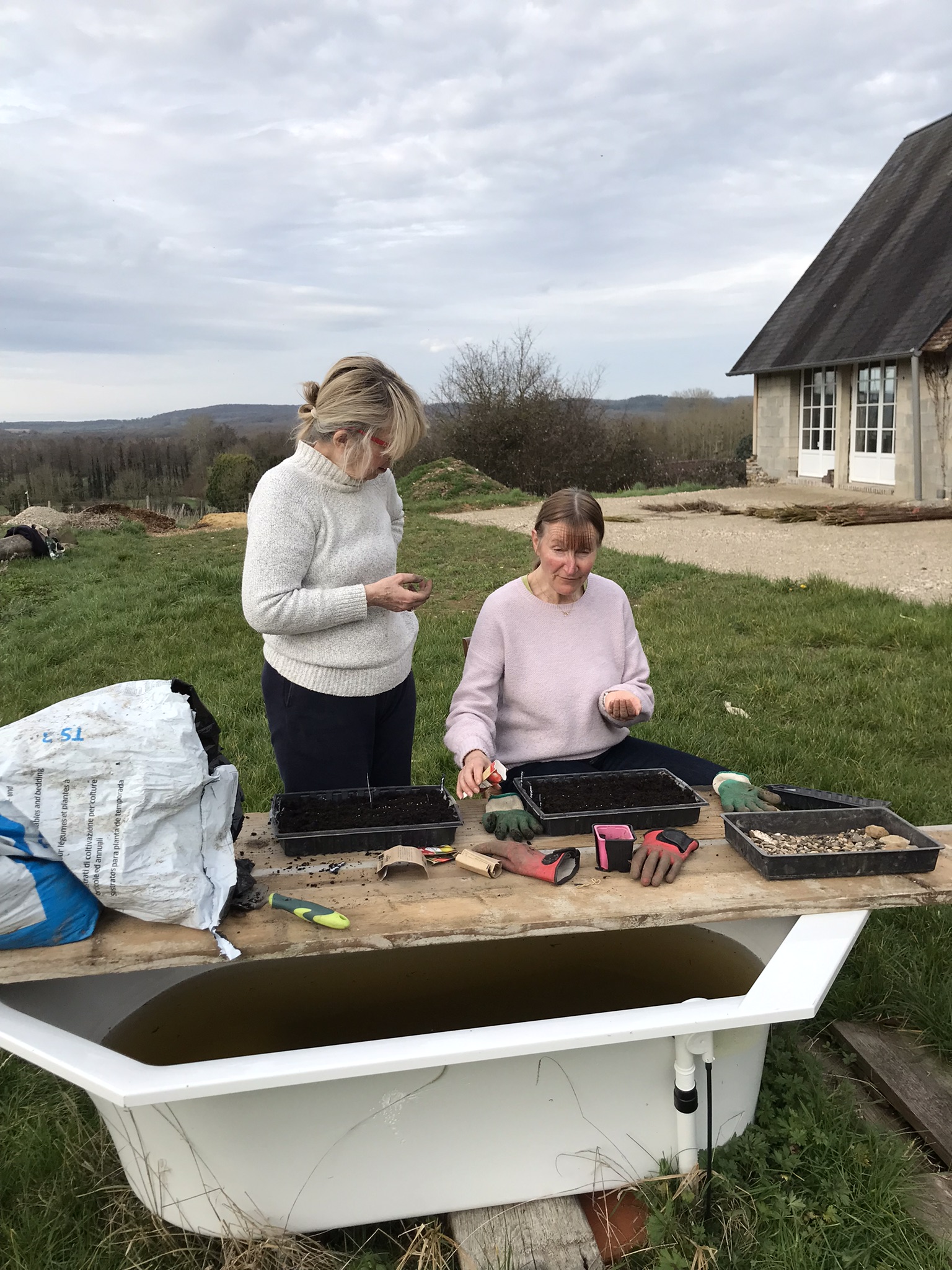 Mercredi après-midi : semis sous châssis et en terre avec Dominique B