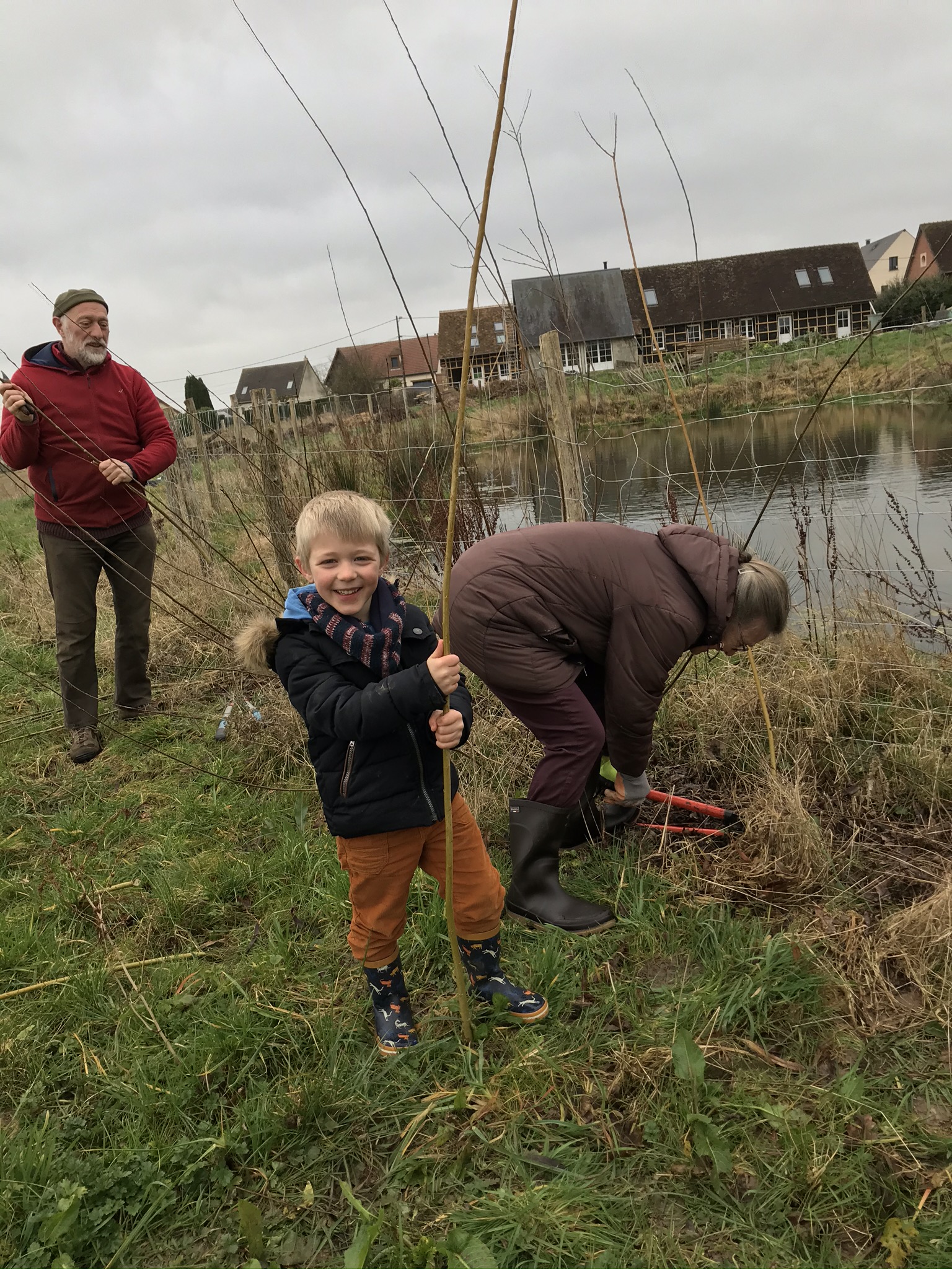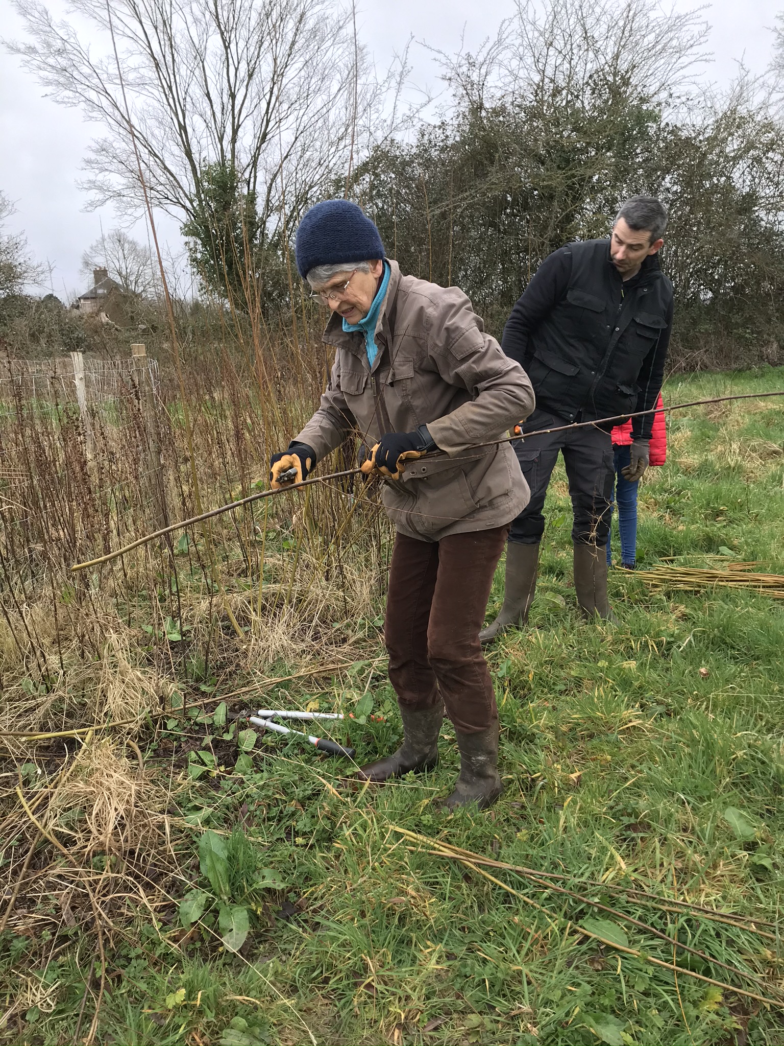- Avec une équipe de 10 personnes, multi-générationnelle et motivée malgré la météo,et grâce aux bons conseils de Sébastien, nous avons fait notre première récolte de saules. Après la coupe et l'ébranchage, nous avons trié les brins par taille, mis en bottes, et mis à tremper les plus gros pour écorçage en Mai. Certains d'entre nous avaient une première expérience en vannerie, mais la plupart étaient des novices. Plein de choses à apprendre tout en faisant.