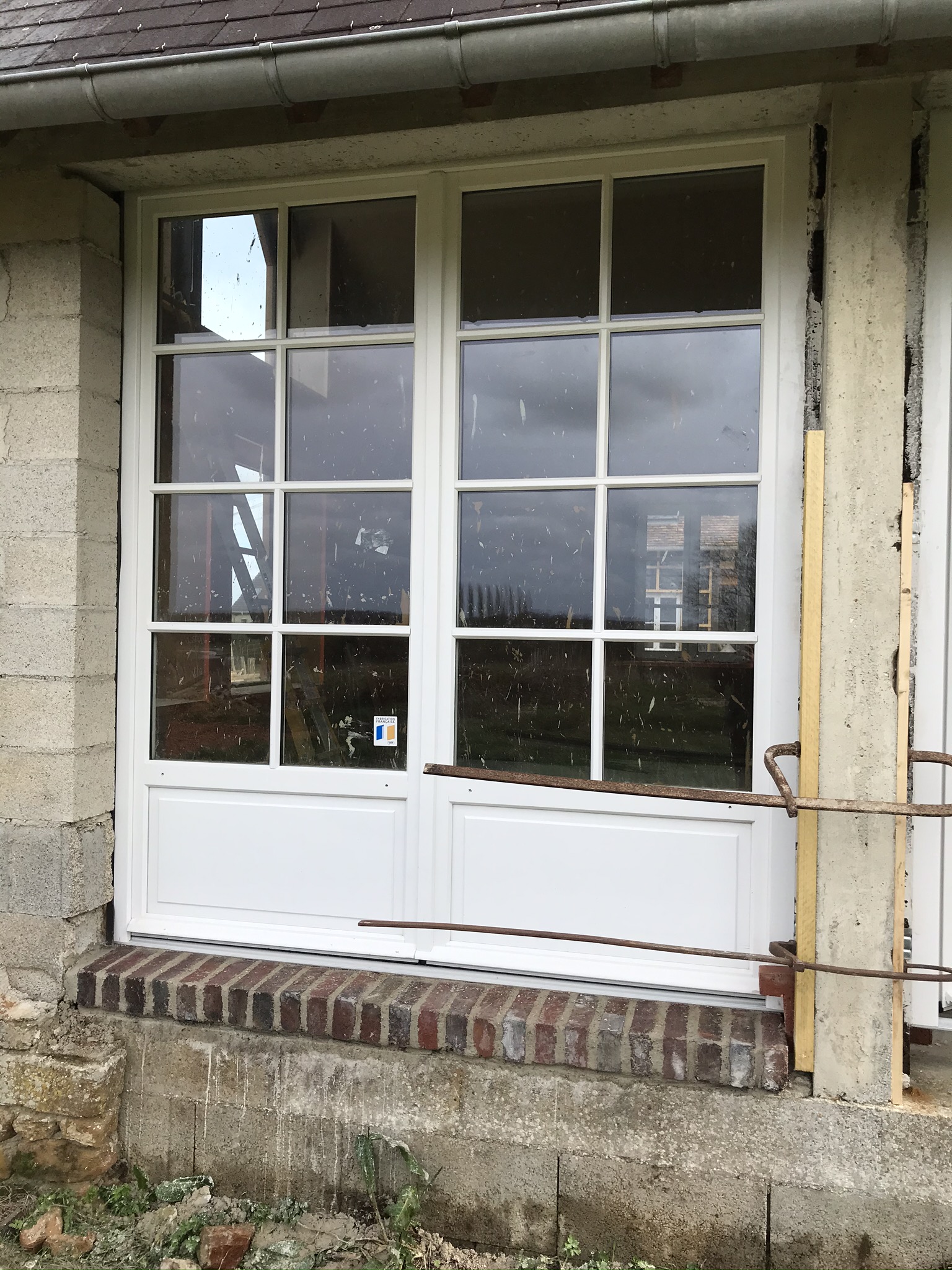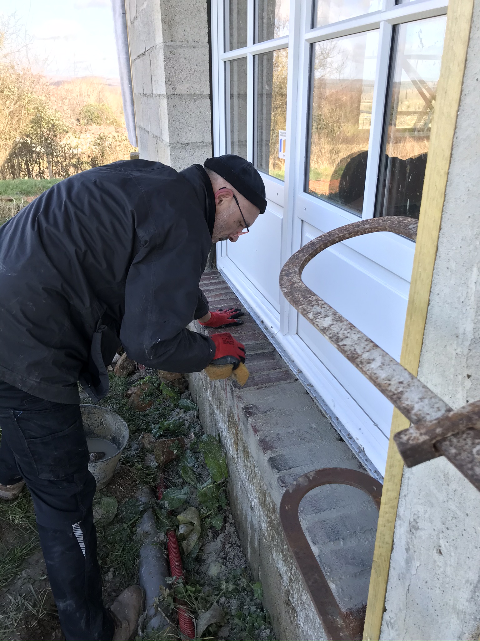 - Christophe a monté les seuils en briques sous les porte fenêtre. Plus besoin des "pansements" d'isolants qui empêchaient les courants d'air...