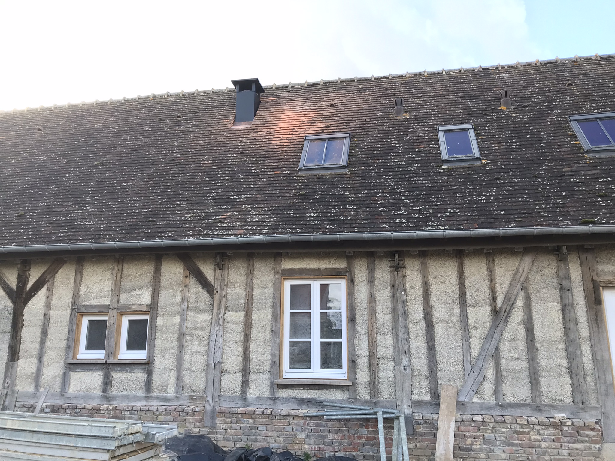 - Le bardage pour le pignon Nord et les façades côté cour et jardin est arrivé, mais pas encore les charpentiers pour le poser...