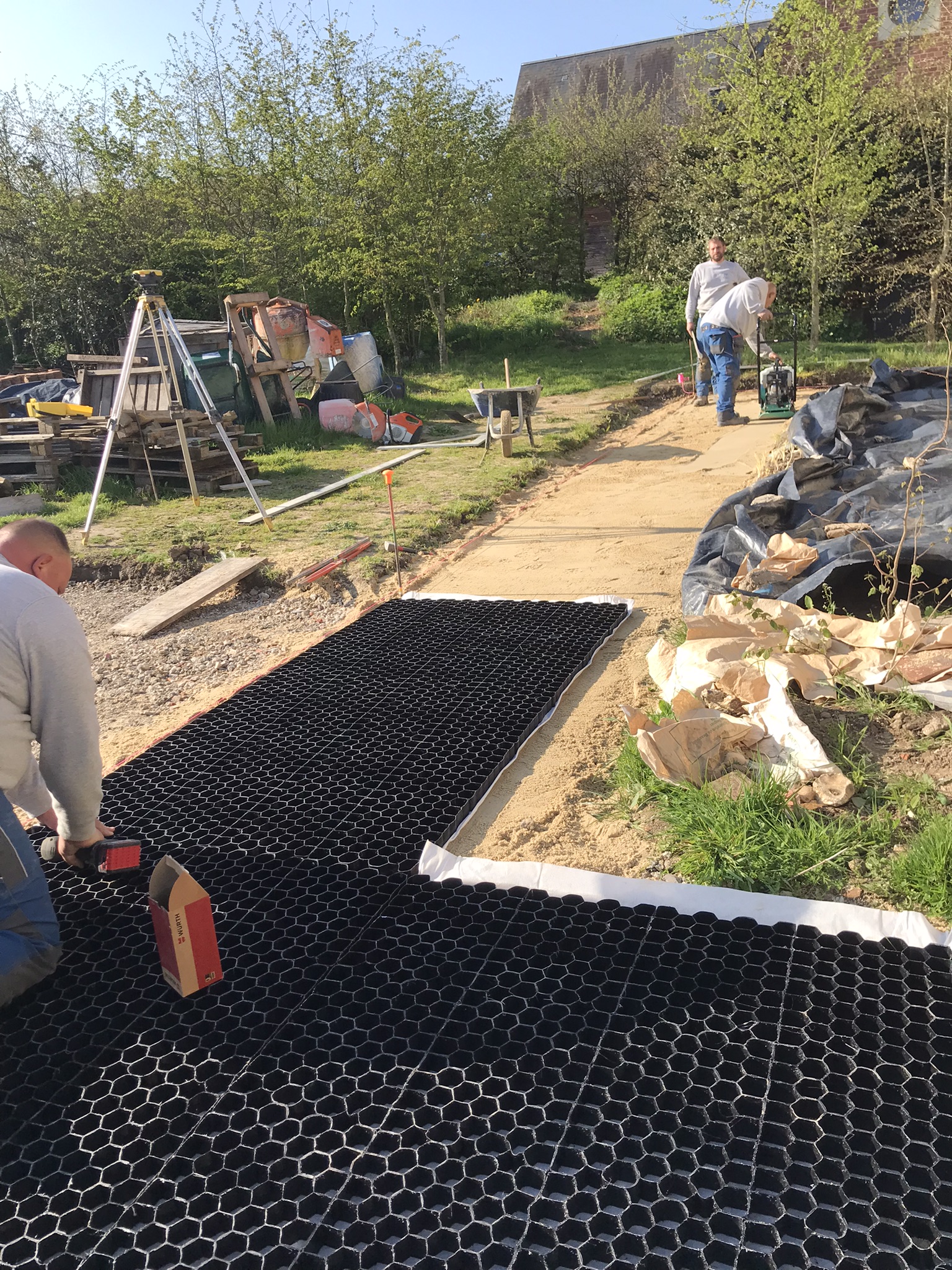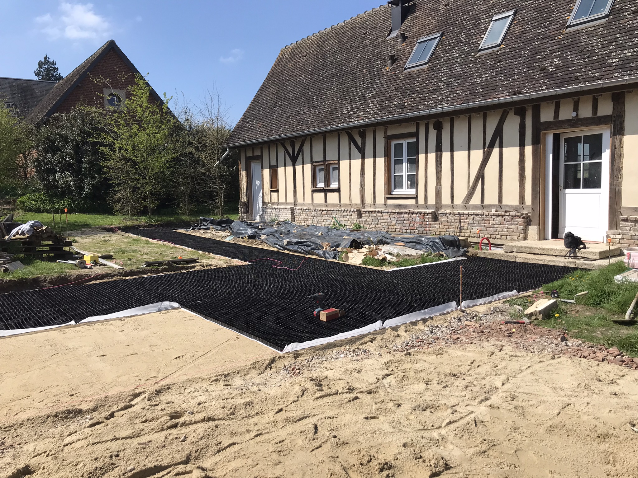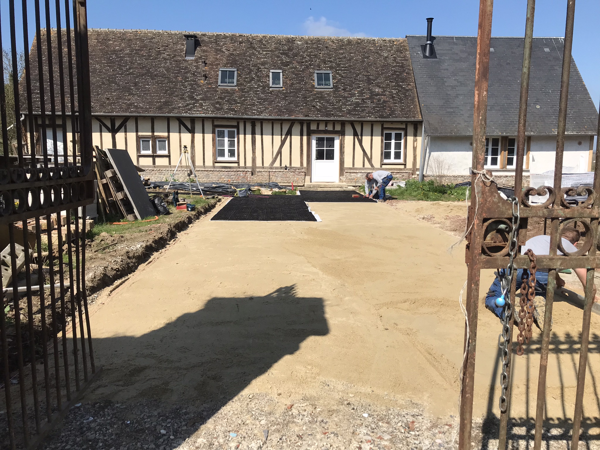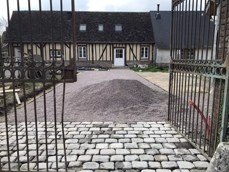 - La société Boyet a continué son travail d'aménagement de l'entrée. Ca fait propre. Il ne reste plus que quelques rangs de pavés à placer, et des plinthes métalliques pour bloquer les graviers. L'accès à TT par la grille sera encore difficile pendant quelques jours.