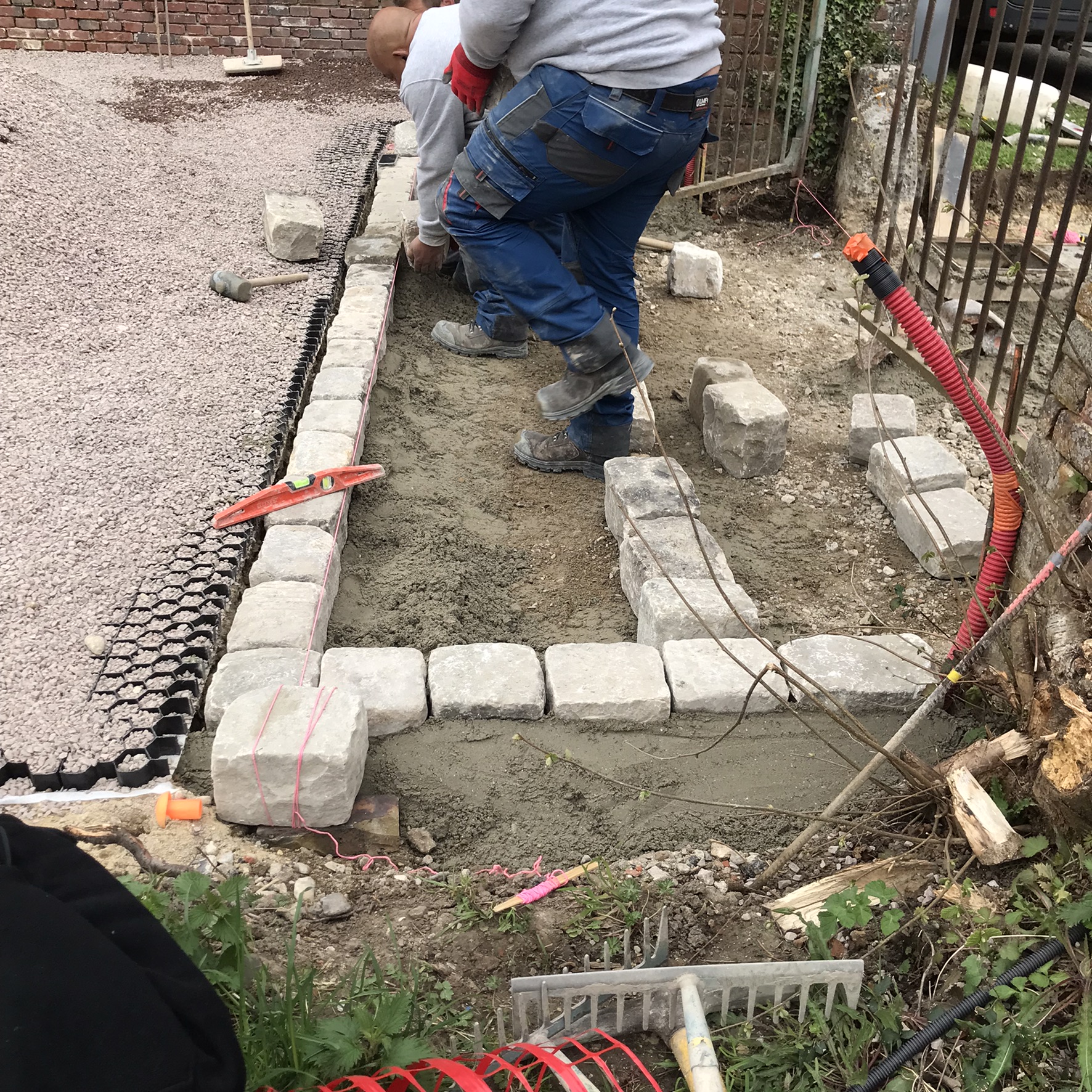 Fin de pose des pavés de l'entrée