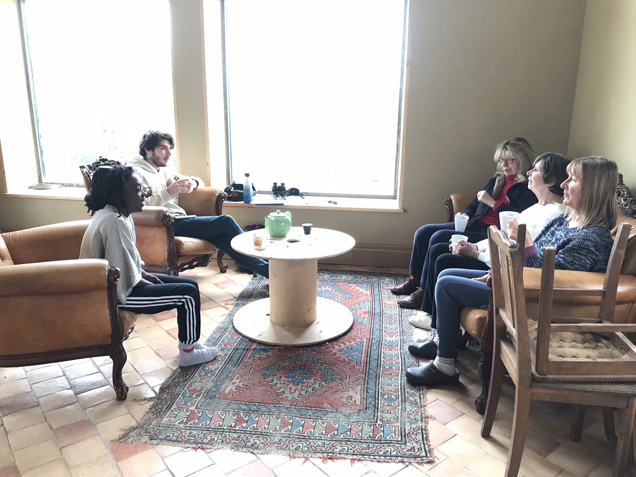 - Laurent est venu pour rencontrer les personnes intéressées par sa proposition de studio mobile de musique. Ils étaient 5, avec des projets plus ou moins formalisés. Laurent leur a demandé d'écrire des petits textes de chansons personnelles, afin de rendre l'activité plus riche. Les RV sont pris pour la semaine prochaine et en mai, afin de démarrer la production. Si vous êtes curieux, vous pouvez par exemple, venir assister aux premiers essais de Cyril vendredi prochain à 14h.