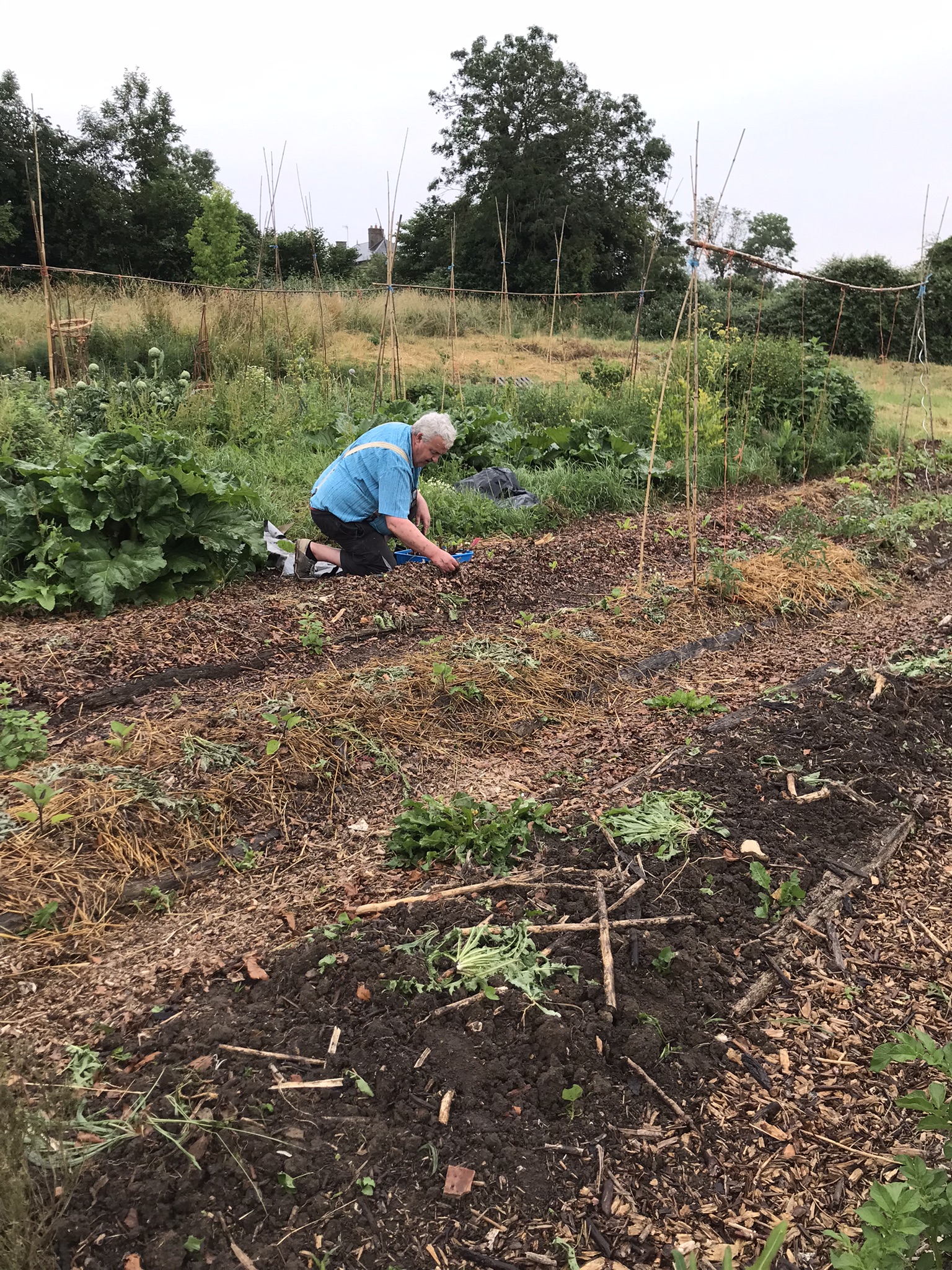 - Les derniers plants de betterave et de blettes sont en place, les poireaux repiqués. Merci à Marc pour son coup de main.