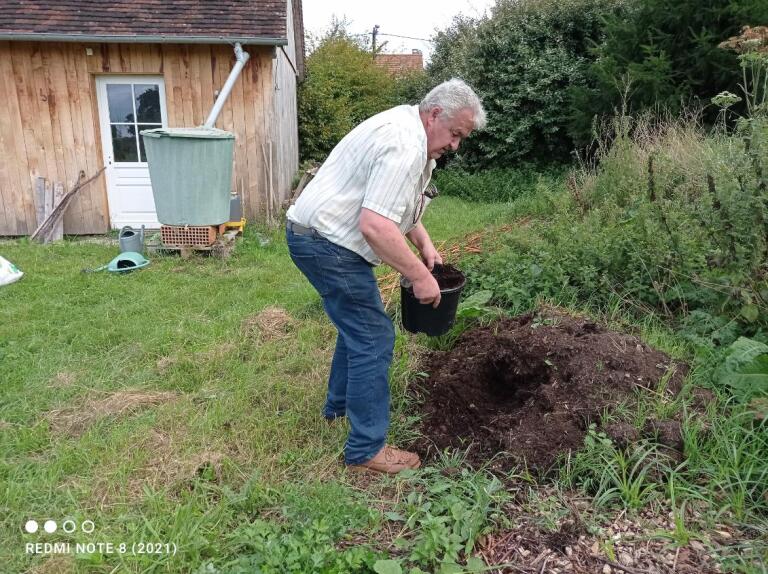 - La récolte de pommes de terre est terminée, Nicole et Marc ont extrait des Yona et des "Blanches" (peau jaune et chair jaune !) . Elles sont maintenant au frais pour se conserver.