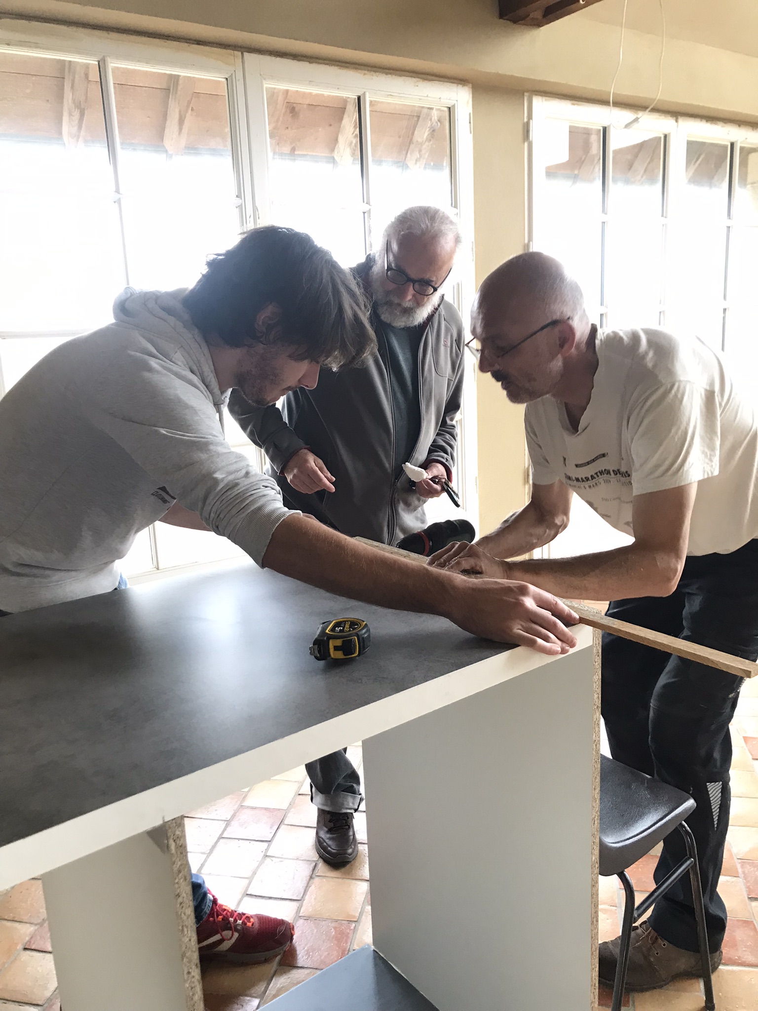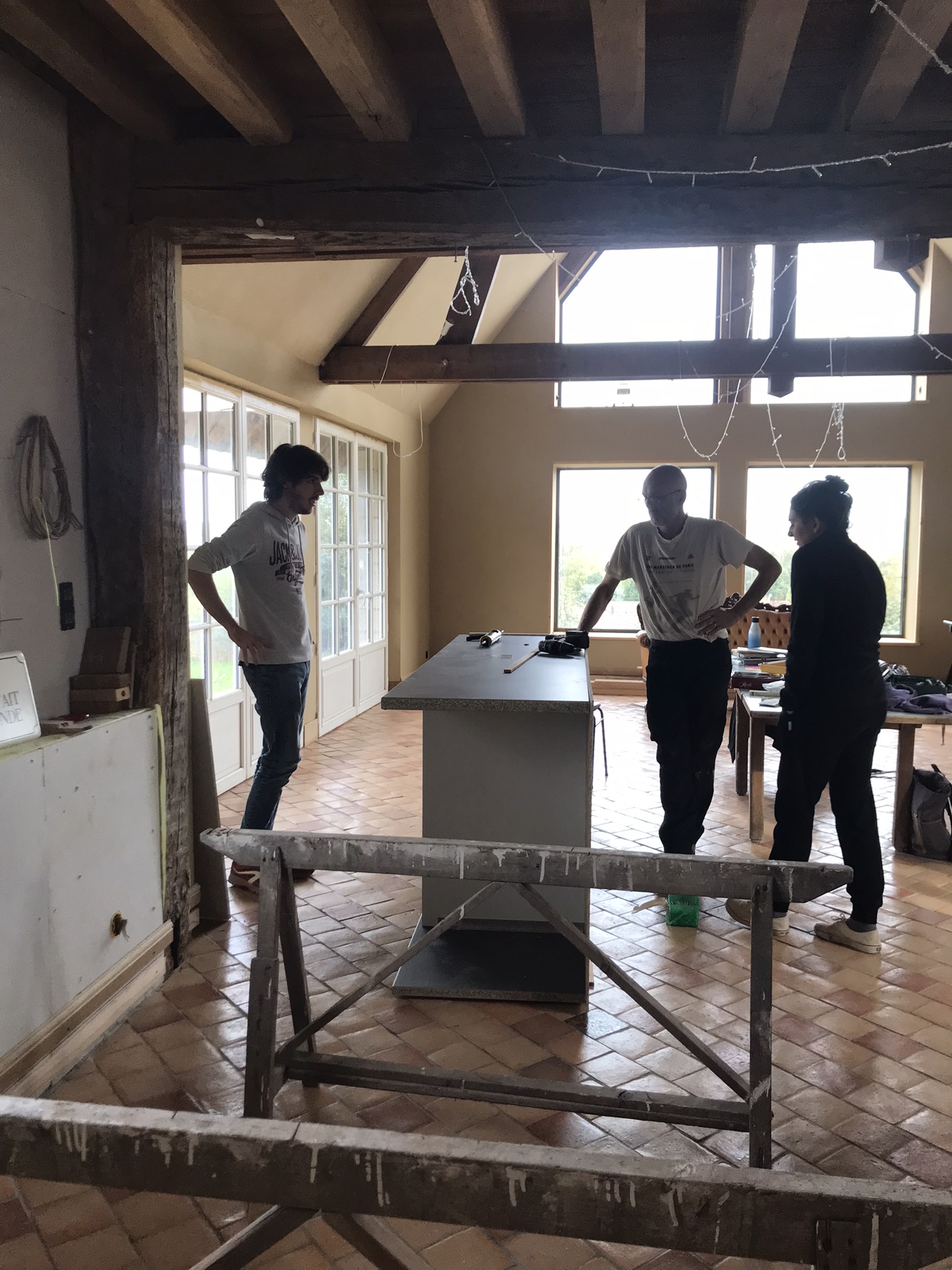 - Visite d'une porteuse d'un projet dans le Vexin, comportant la réhabilitation de bâtiments anciens dont une grange, pour accueillir une association où des jeunes attirés par les professions du bâtiment pourront se croiser et apprendre, en commençant par un chantier école, et l'outil en main. Nos matériaux et techniques de restauration l'ont bien intéressée.