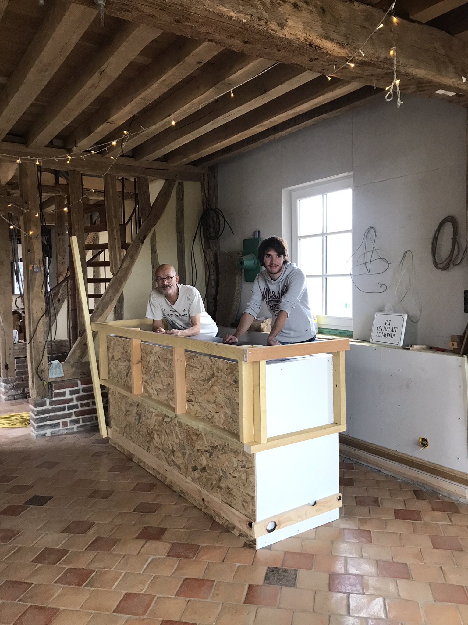 - Clou de la semaine : la structure du bar est en place . Elle attend une finition extérieure et un "comptoir sur lequel beaucoup attendent de s'accouder ;)