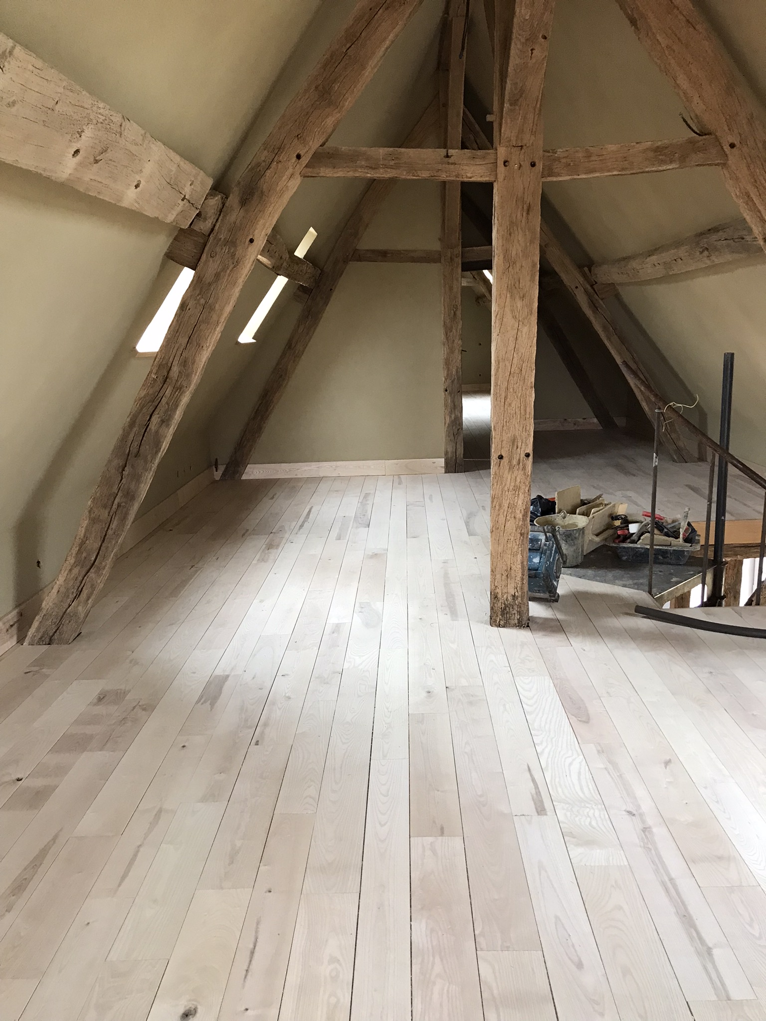- Isa et Johann ont terminé la finition de l'enduit à l'étage. La fin de cette partie arrive à grand pas.