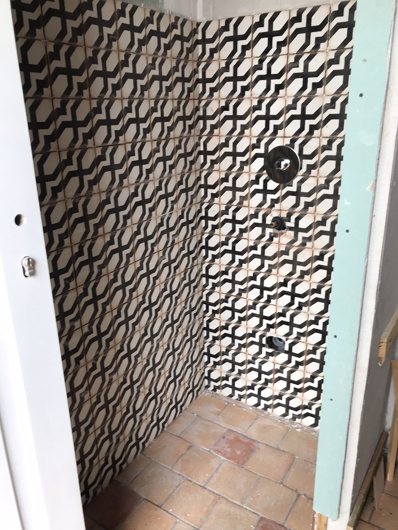 - Christophe a démarré la pose des faïences dans les toilettes. La pissotière qui aura du chien... quand elle sera posée et en fonctionnement !