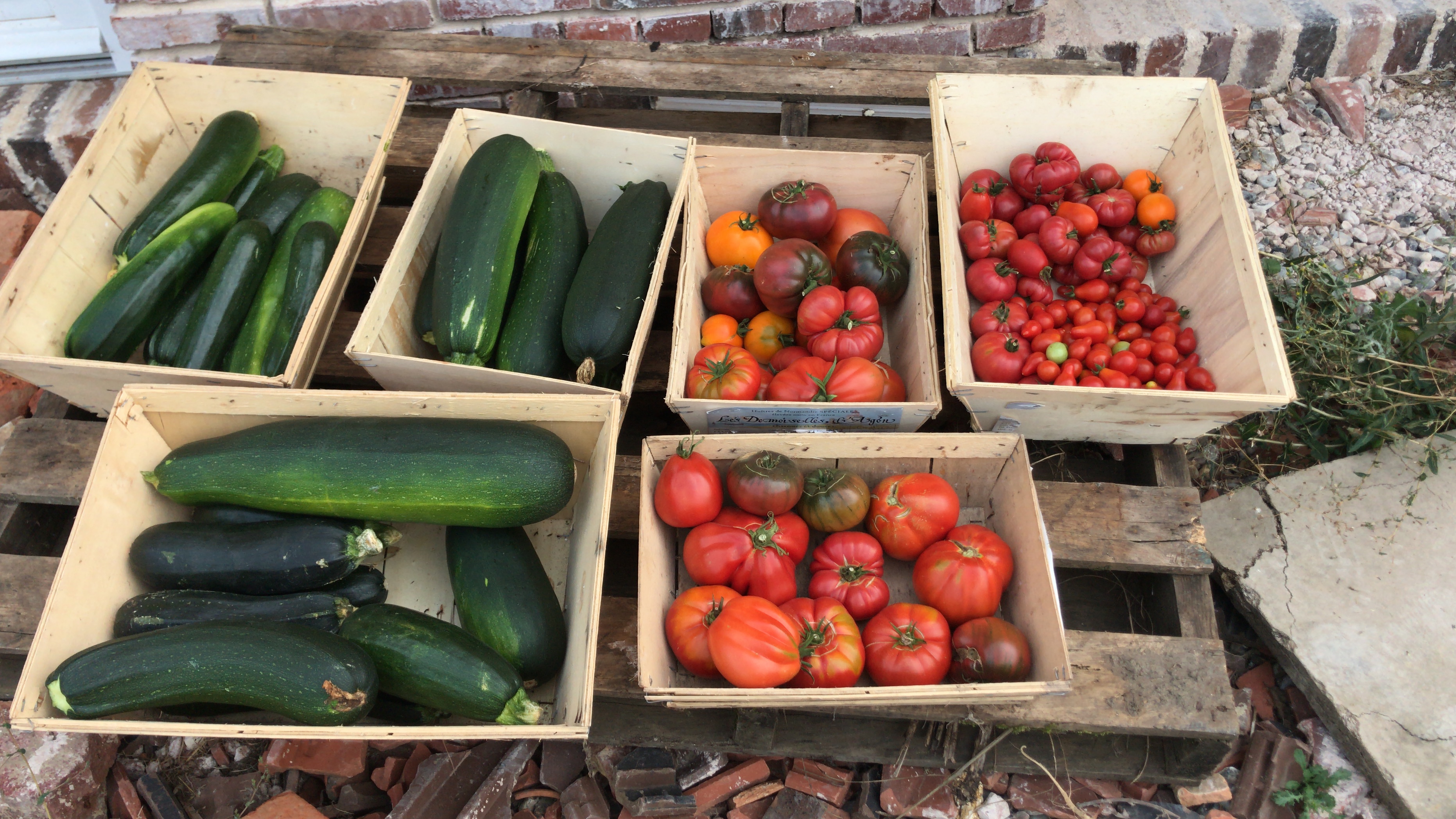 Les tomates n'ont pas encore chopé le mildiou mais l'alternance de pluie et chaleur devrait avoir raison d'elles bientôt...en attendant venez profiter de ces beaux calibres et variétés.