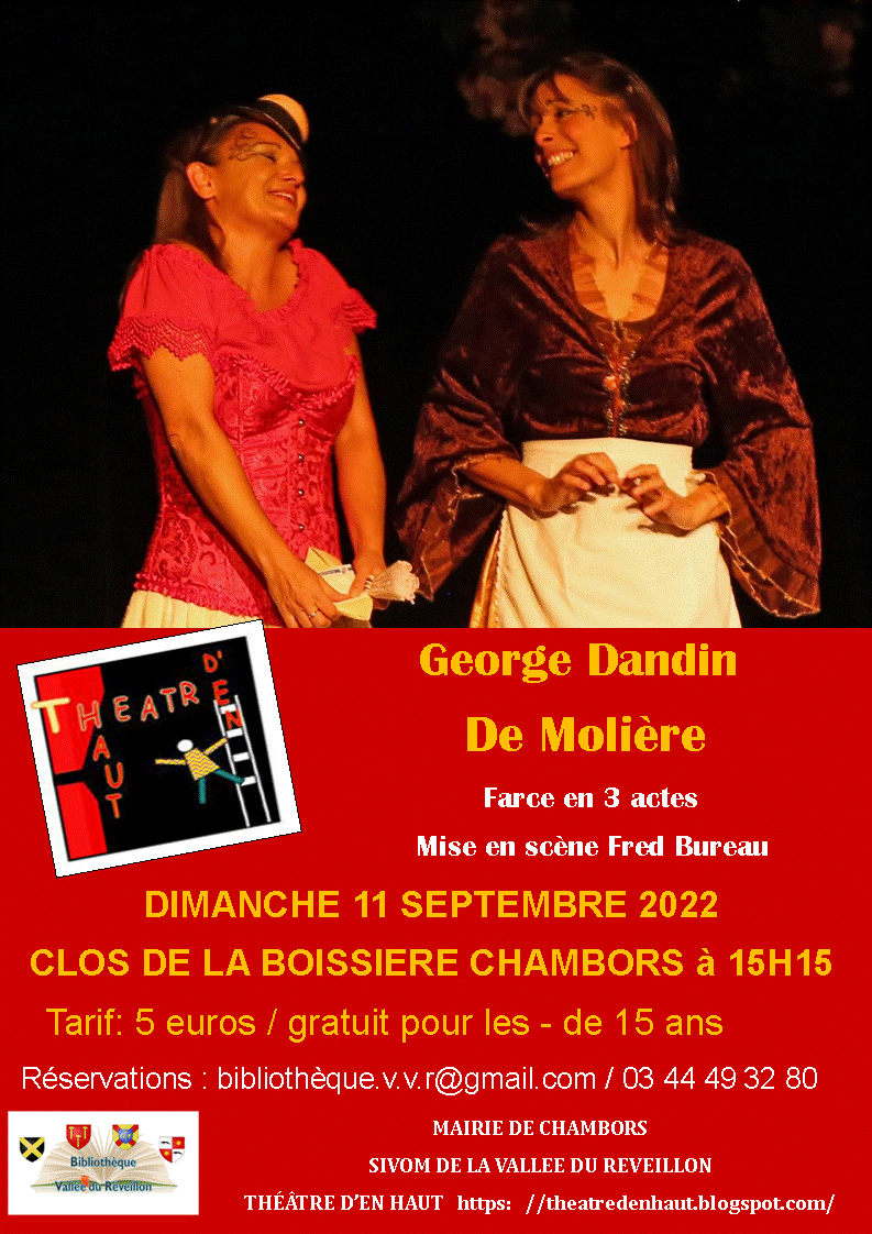 Il nous signale une représentation théâtrale de George Dandin, de Molière, à Chambors, non loin de Gisors ; voir affiche jointe.