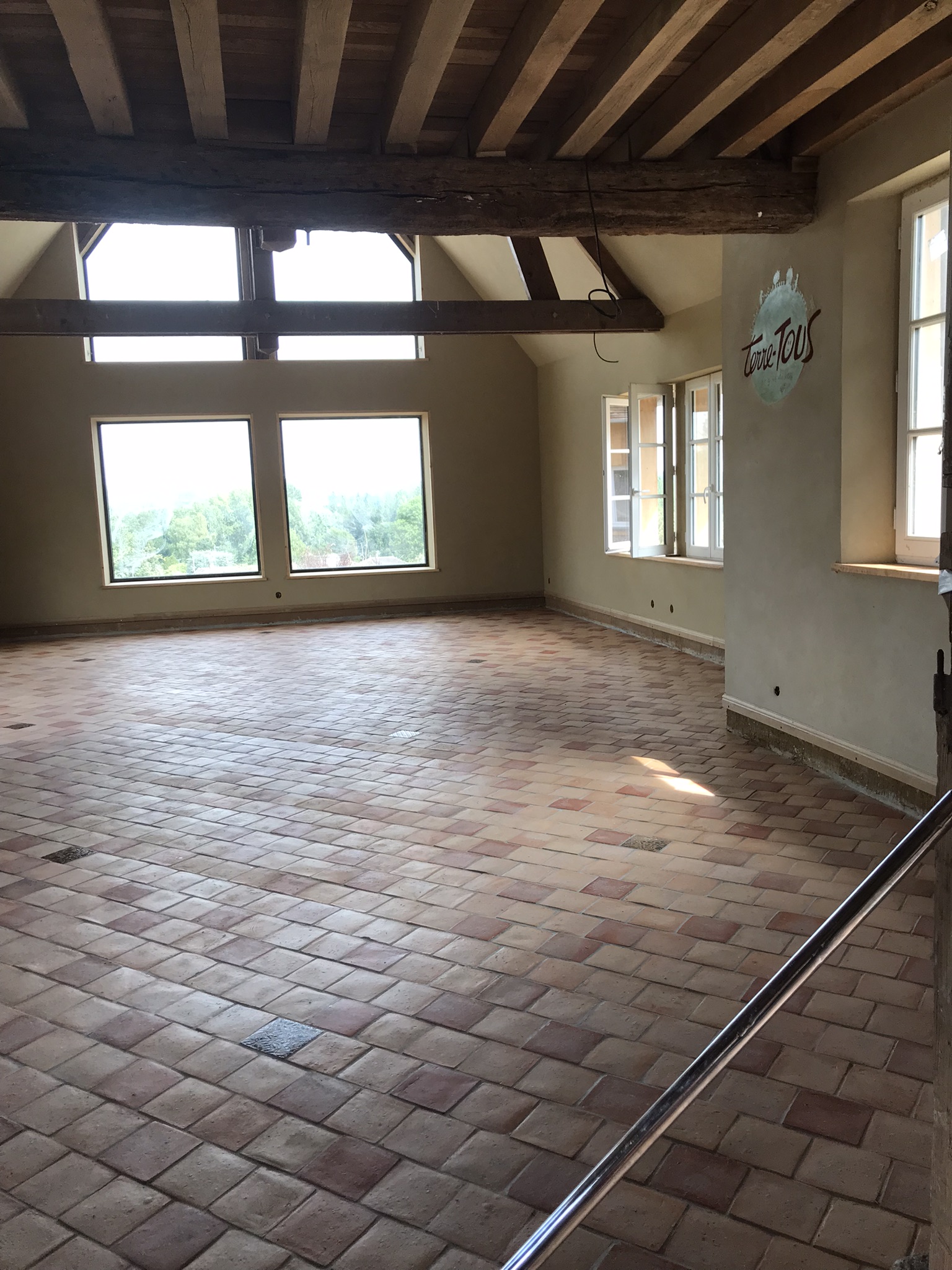 - J'ai commencé le traitement des tomettes avec une huile dure végétale. Le visuel est déjà plus intense. La pièce ne demande qu'à être aménagée. Certains ont déjà commencé à concevoir le bar, mais au-delà, comment aménager cet espace. Des banquettes, des fauteuils, des chaises ; quelles tables.. ? Récupération de mobilier, style, qu'en pensez-vous ? il nous faudrait une équipe agencement de la salle pour se mettre en route et faire des propositions.
