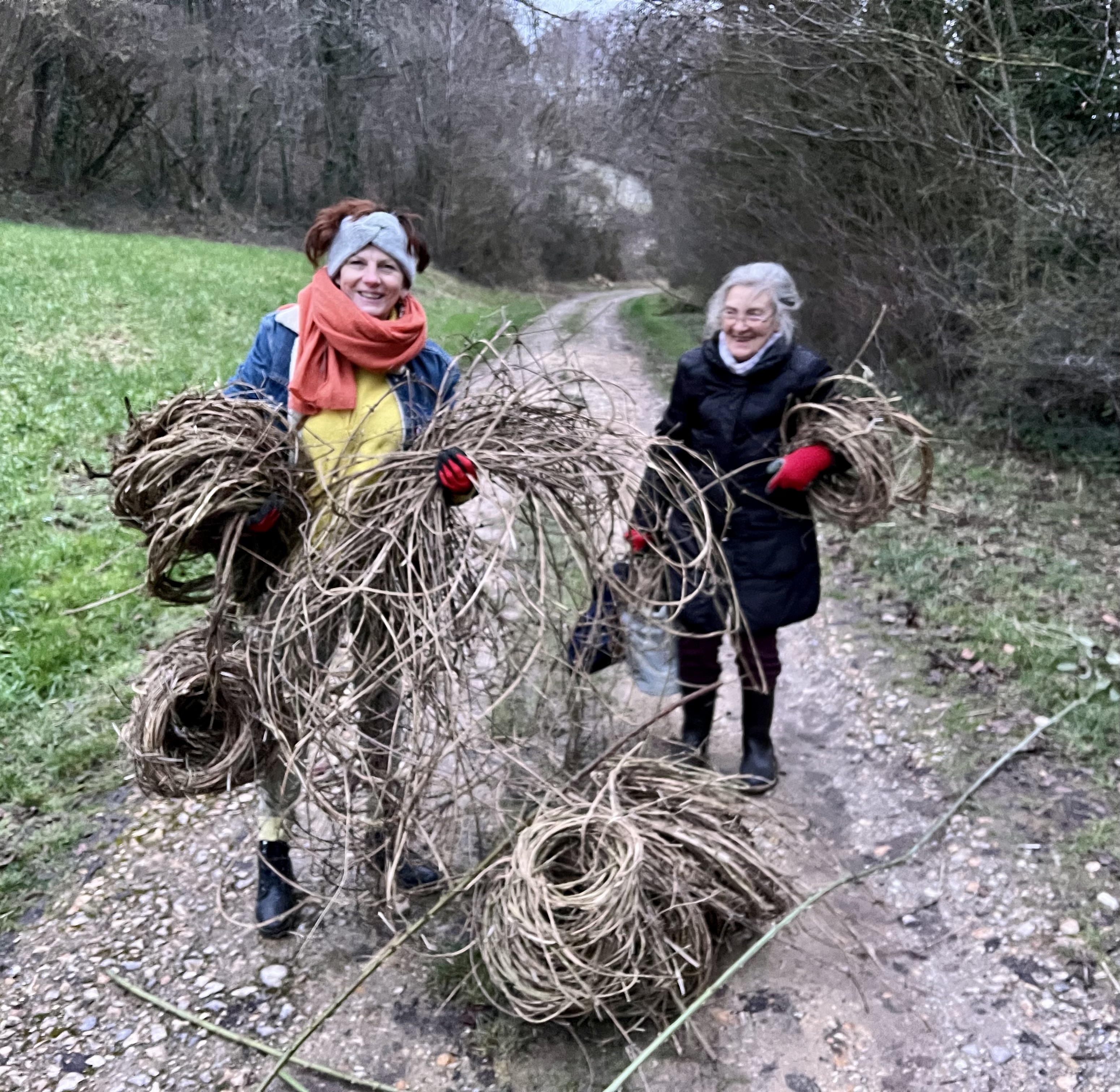Vannerie : - Vendredi dernier, un groupe de 6 courageux.ses a cherché des lianes de clématites sauvages dans les Larris, et fini par en dénicher une belle quantité, C'est un matériel parfait pour la vannerie sauvage, à condition de la cuire et de l'éplucher, prochaine étape donc, à programmer la semaine du 13 Février.