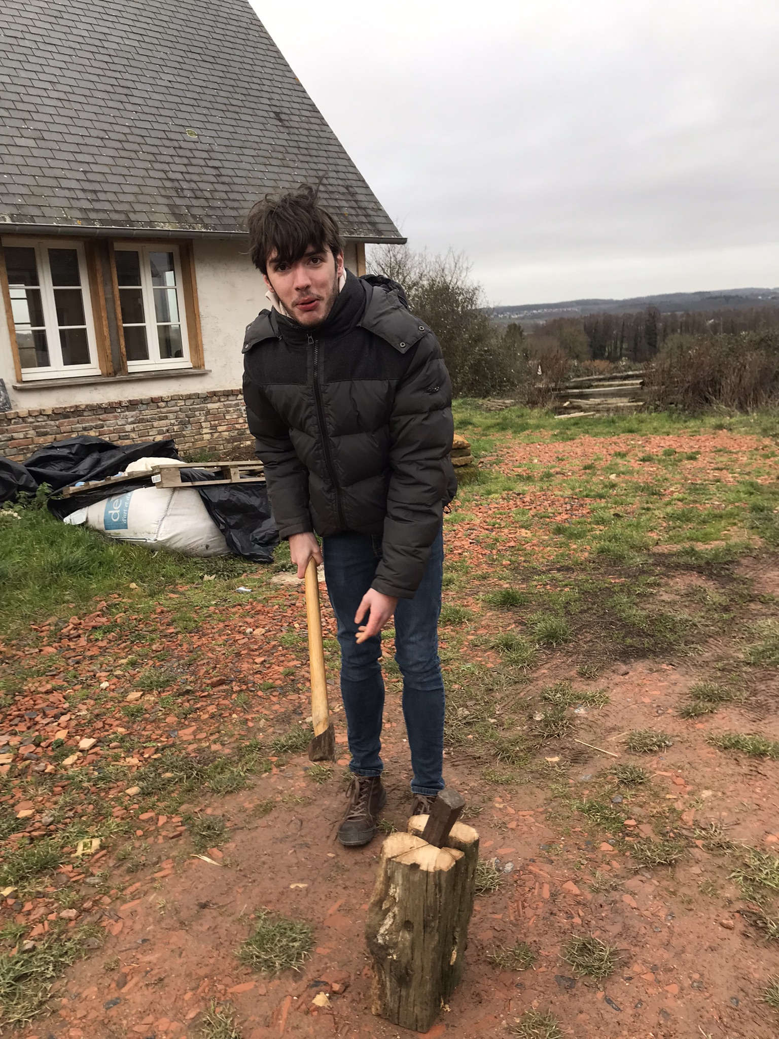 Le manque de bois a néanmoins contraint Hugo à travailler de chez lui quelques jours... Quelques réserves de bois depuis mardi (merci Chantal !), mais on ne dépasse guère 14°C...Le vrai chauffage est attendu.